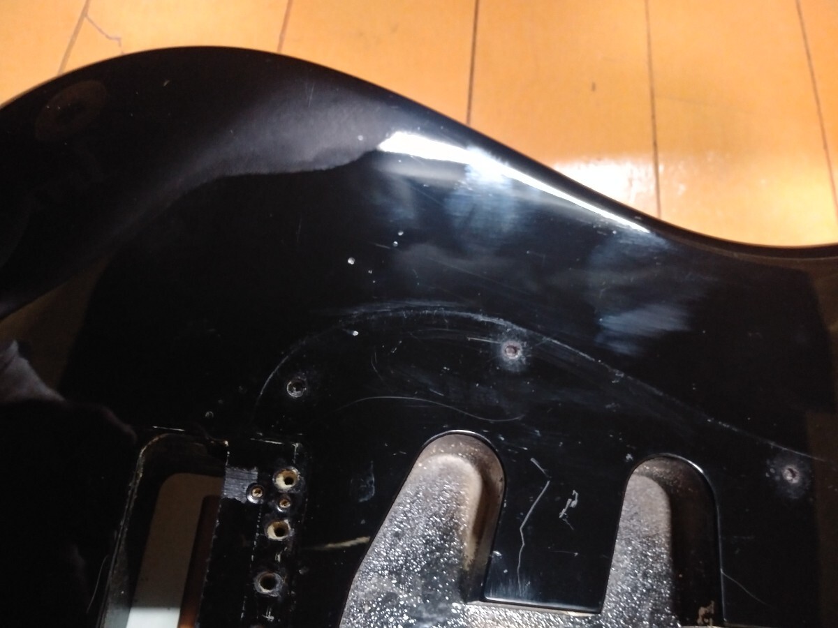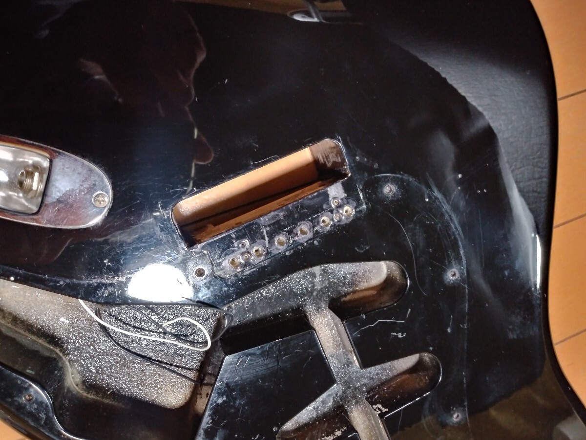 ボディ材質はバスウッドだと思われますが、ネックポケットの木目から、画像でご判断ください。ネックポケット付近に塗装クラックがあります。