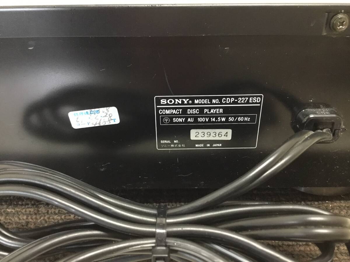 △ y 岐阜発/ SONY/ ソニー/ CDプレーヤー/ CDP-227ESD/ ジャンク/ トレイ開きません/ 通電のみ確認/ 現状品/ R7.10/11 △ |