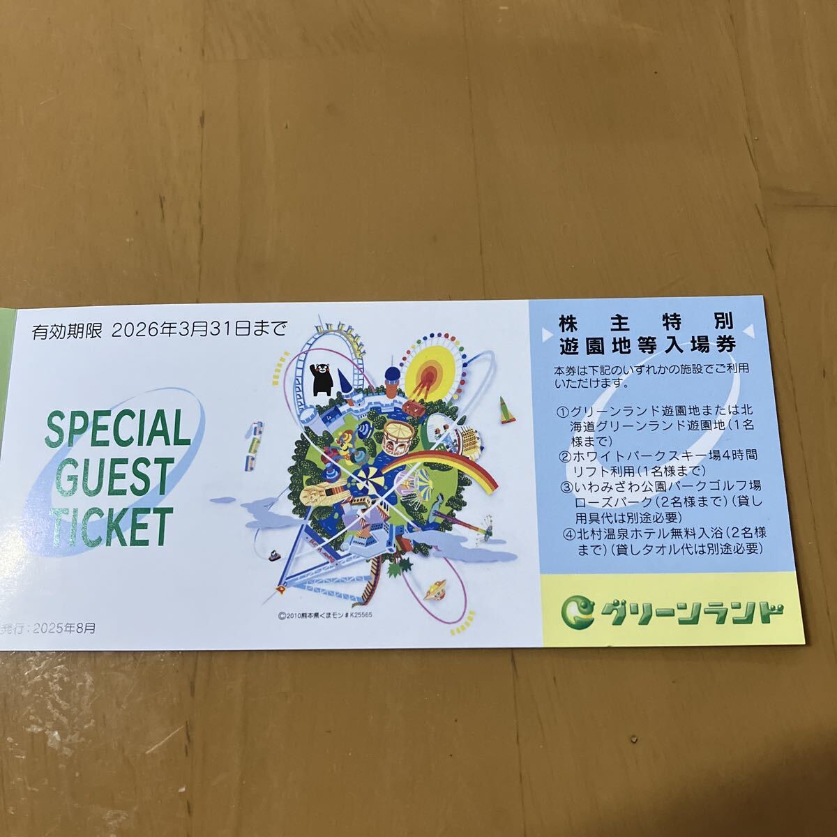 送料無料 グリーンランド 株主特別ご優待券 1冊