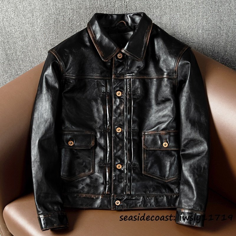 定価27万超■最上級*ナッパ 茶芯 馬革 レザージャケット 革ジャン ライダース ホースハイド 本革 バイクレザー アメカジ ホースレザー 5XL