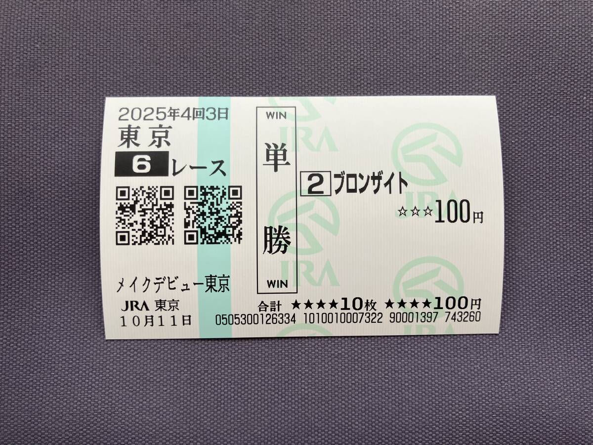 2025年度メイクデビュー東京(10/11)現地単勝馬券ブロンザイト