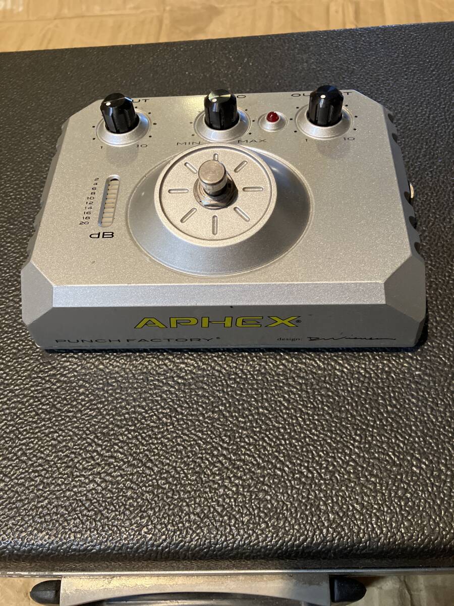 APHEX PUNCH FACTORY ベースコンプ 難あり 本体のみ コンプレッサーとして問題無く使用できます、アダプターと電池で動作確認済み、難あり内容はINPUTのボリュームが一回転してしまうので要交換ですが可変レベルは機能してます