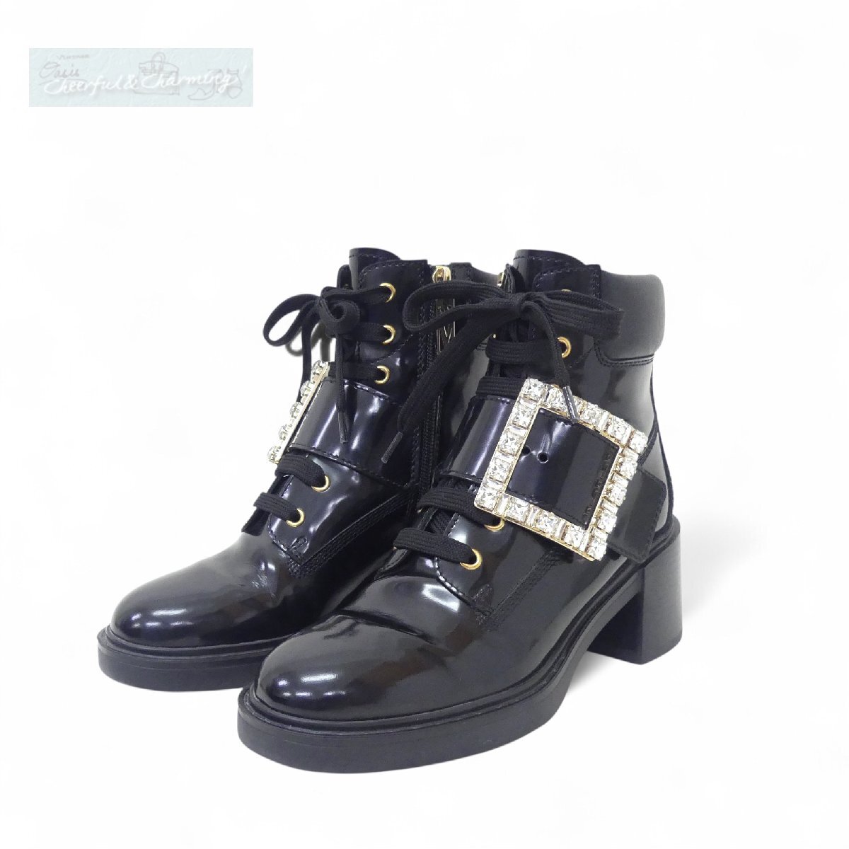 Roger Vivier/VIVレンジャーストラスバックルレースブーティ |