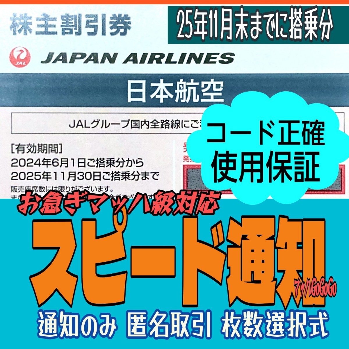 ◆日本航空 JALの株主優待券(株主割引券)1枚の価格です。1枚から残数まで、ご希望の枚数を選択してください。