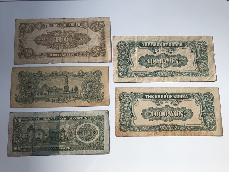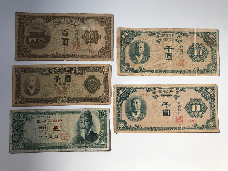 韓国銀行券 5枚 希少 旧紙幣 古札 古紙幣 紙幣 貨幣 希少