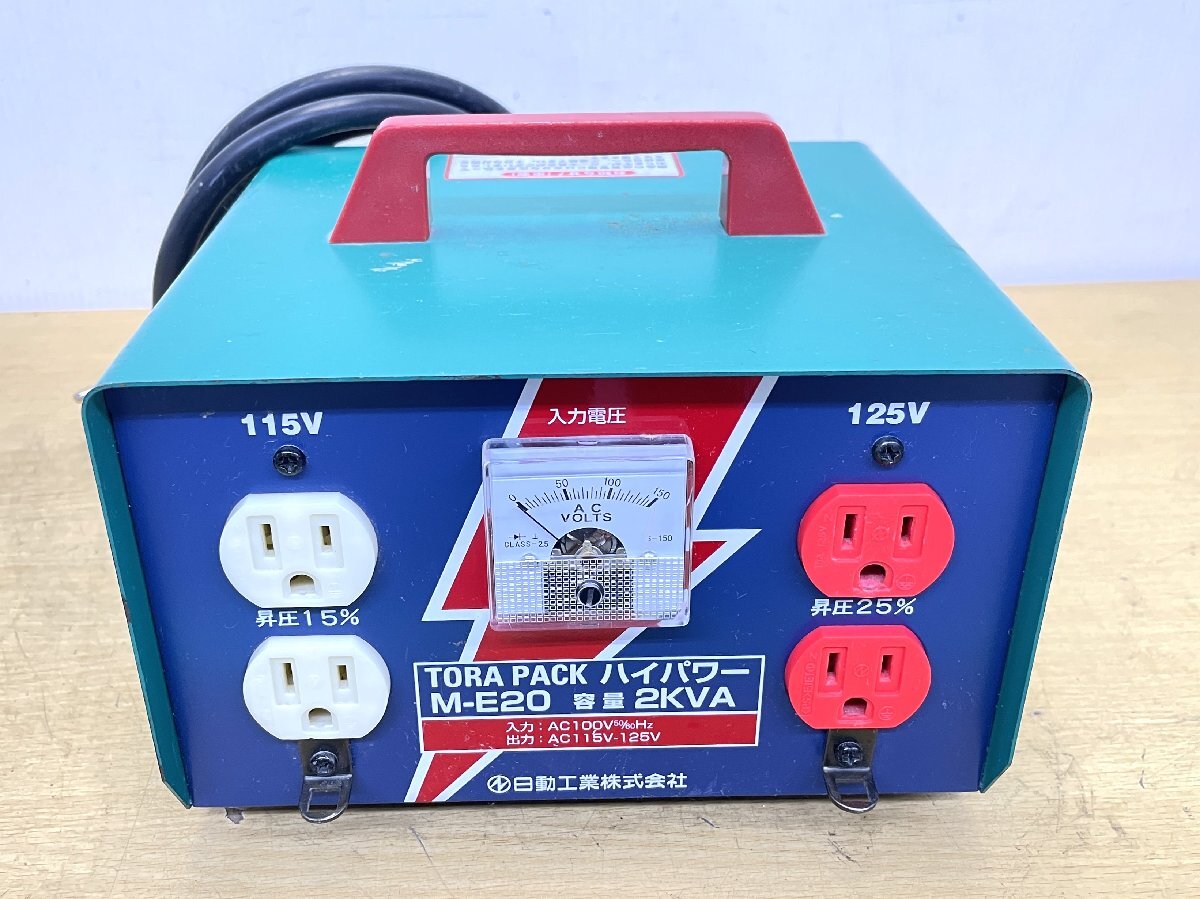 ●日動 ニチドウ M-E20 TORA PACK ハイパワー 昇圧器 100V専用 出力115V-125V 2kVA 変圧器 昇圧専用トランス コンセント4個【11089755】