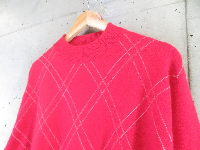 1101b1◆新品 28000円◆カシミヤ100%◆VESVIO チェック柄 ハイネック カシミヤニットセーター L/カーディガン/ベスト/ゴルフジャケット