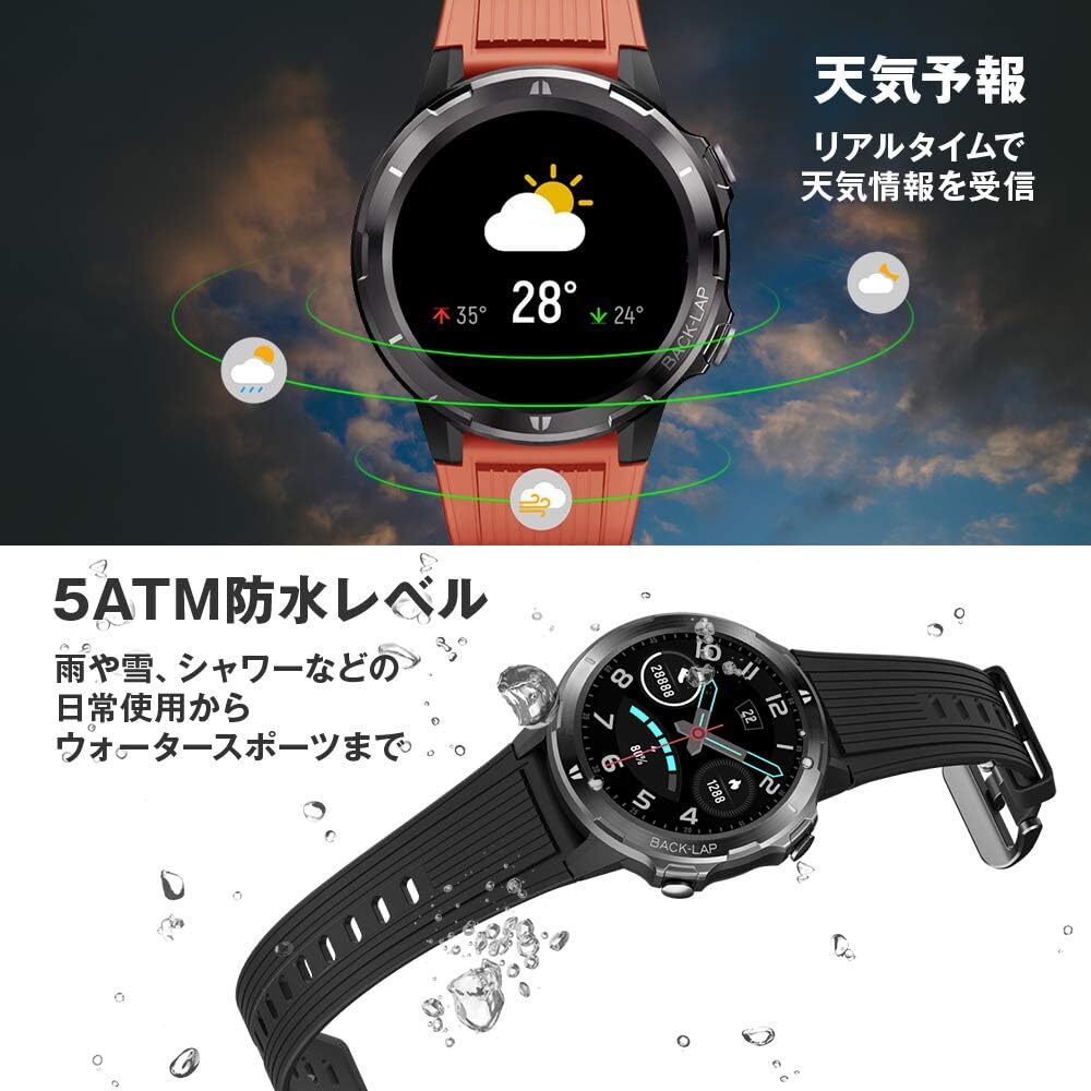 ブリシア スマートウォッチ WATCH 腕時計 1.3インチ大画面 5ATM防水 水深50M防水 着信通知 APP通知 マグネット充電 高性能 スポーツ