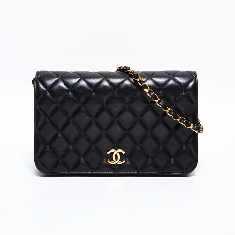 シャネル CHANEL ショルダーバッグ 4番台 1996-1997 ラムスキン フルフラップ チェーン ブラック