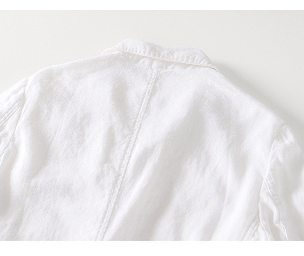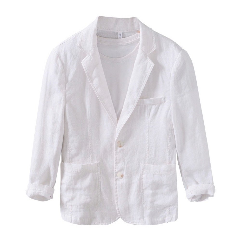 リネン テーラードジャケット メンズ ブレザー 麻100% ビジネススーツ サマージャケット 長袖 コート 紳士服 無地 アウター ホワイト XL