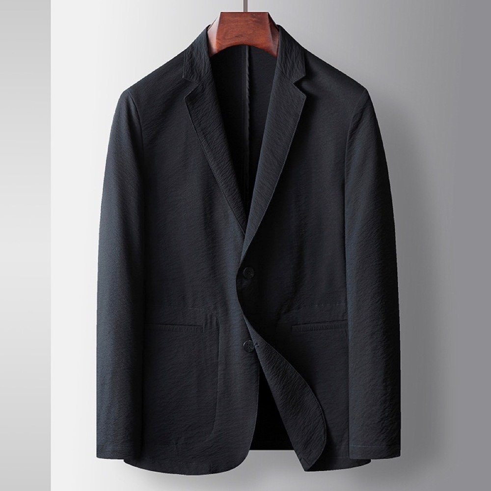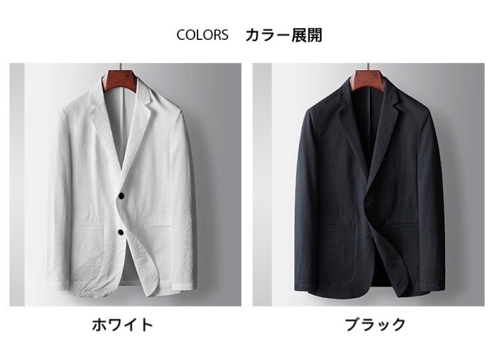 テーラードジャケット サマージャケット メンズ ブレザー ビジネススーツ 薄手 長袖 フォーマル 紳士服 春夏 皺生地 ブラック 2XL/185