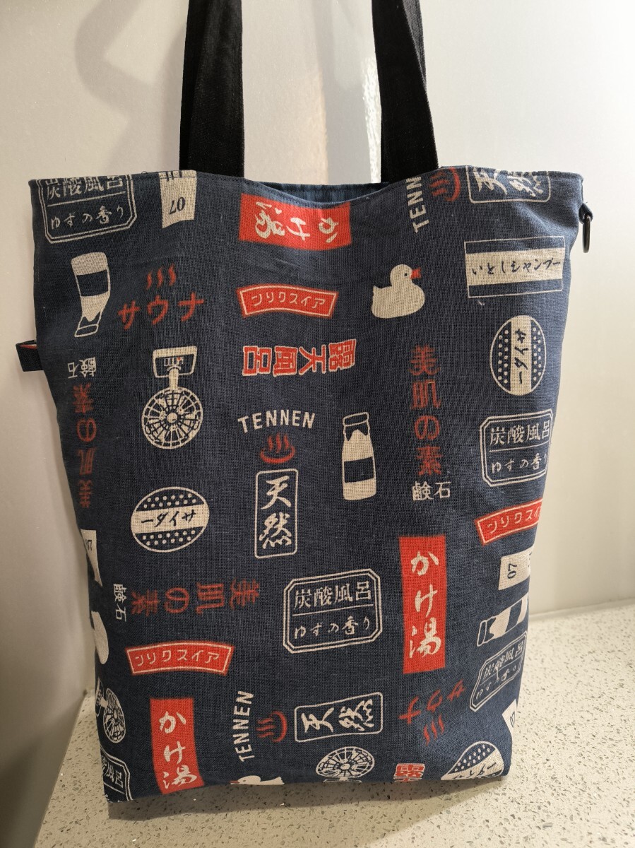 昭和の銭湯ロコの生地を使った便利手提げ。