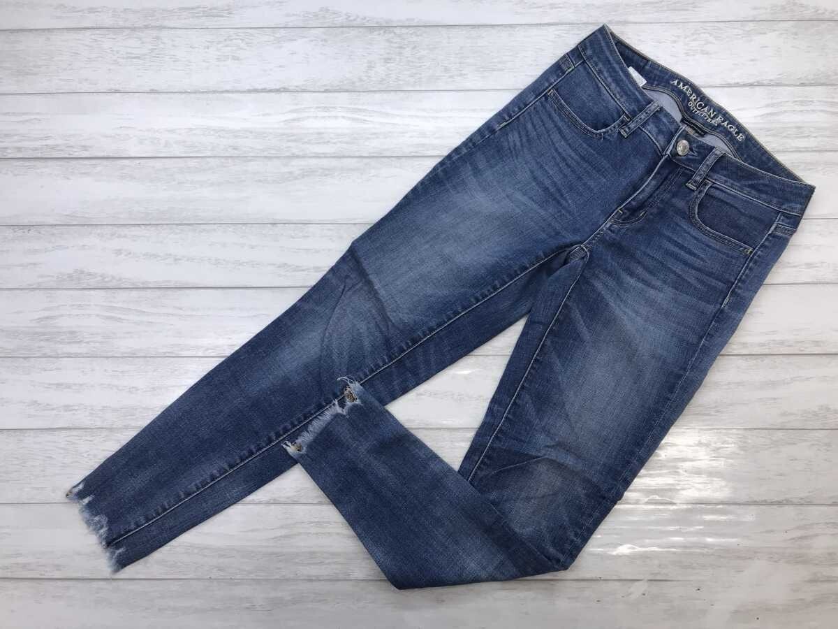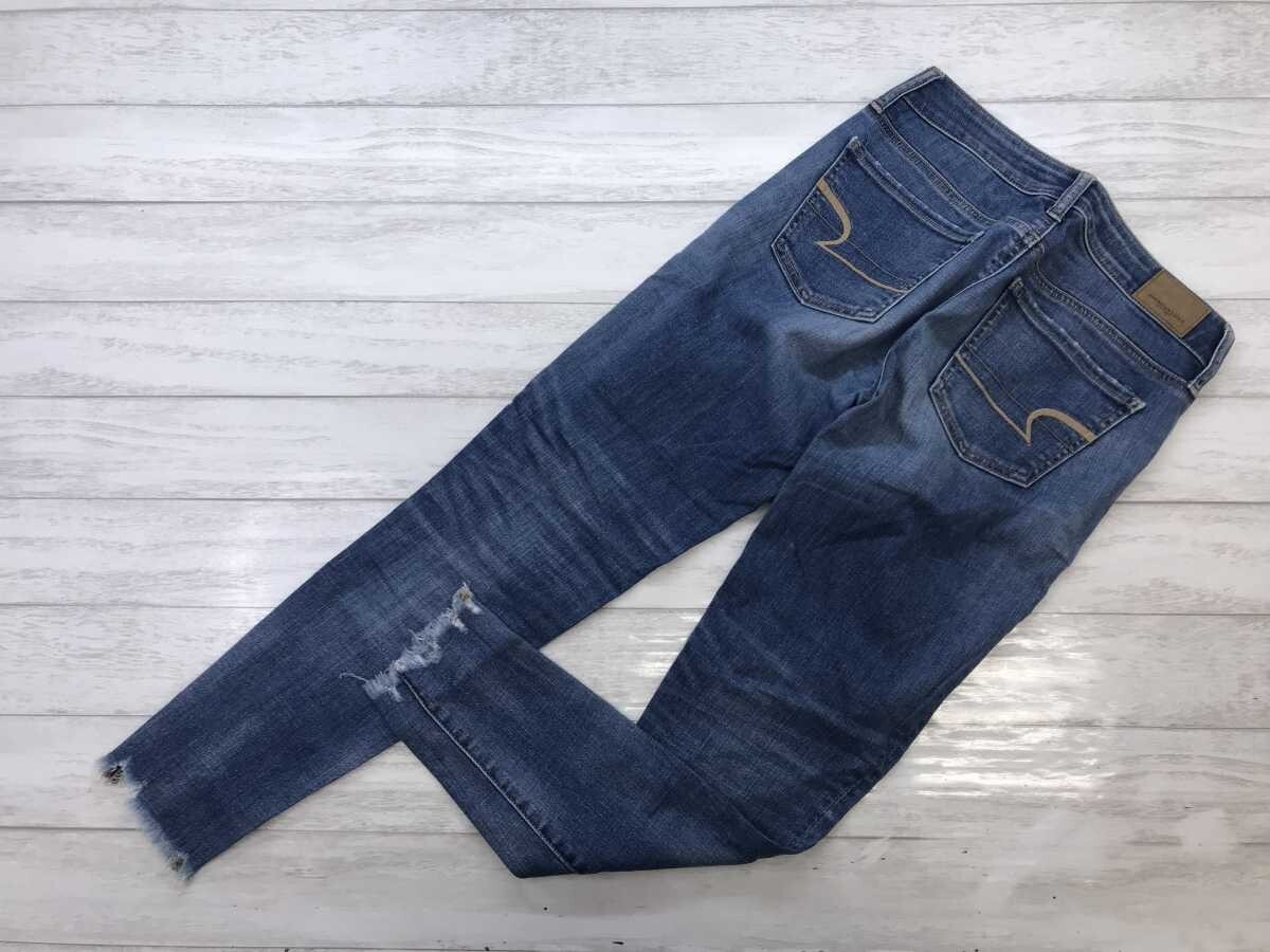 アメリカンイーグルアウトフィッターズ AMERICAN EAGLE OUTFITTERS カットオフ スキニー デニム パンツ ジーンズ ボトムス レディース 0 青です。