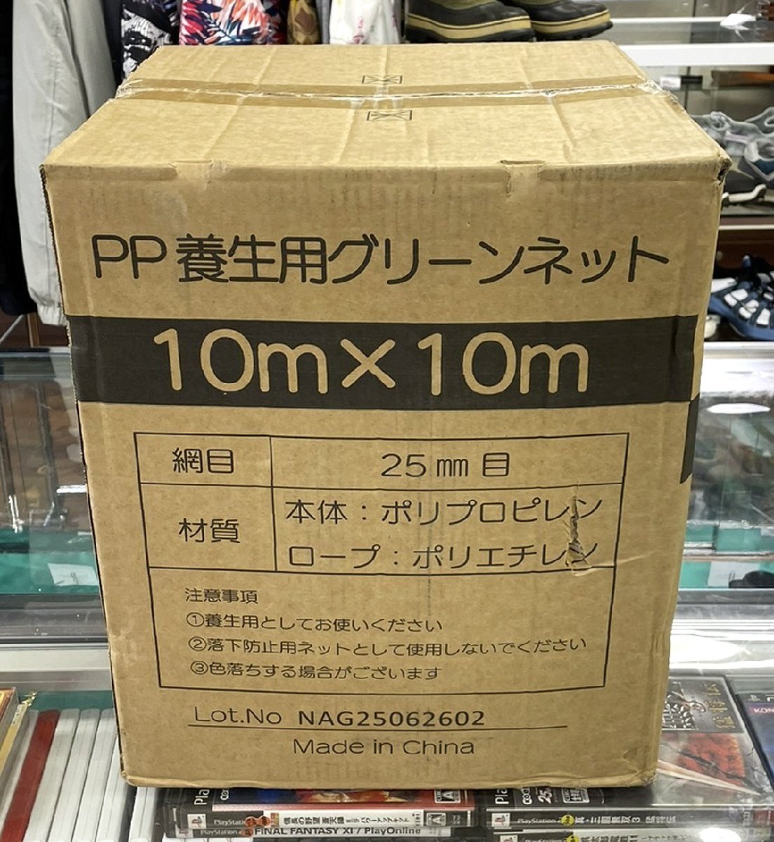 未使用 PP養生用グリーンネット 10m×10m 25mm目