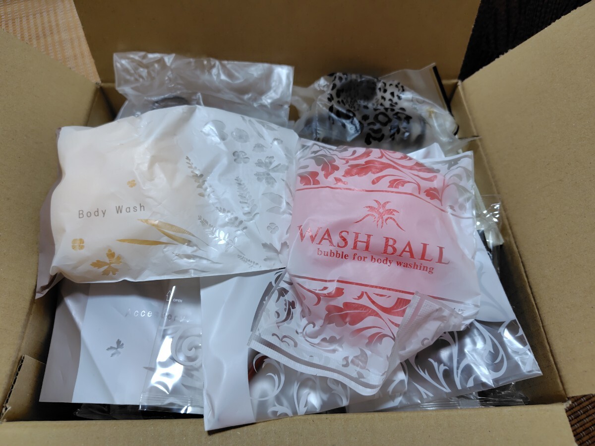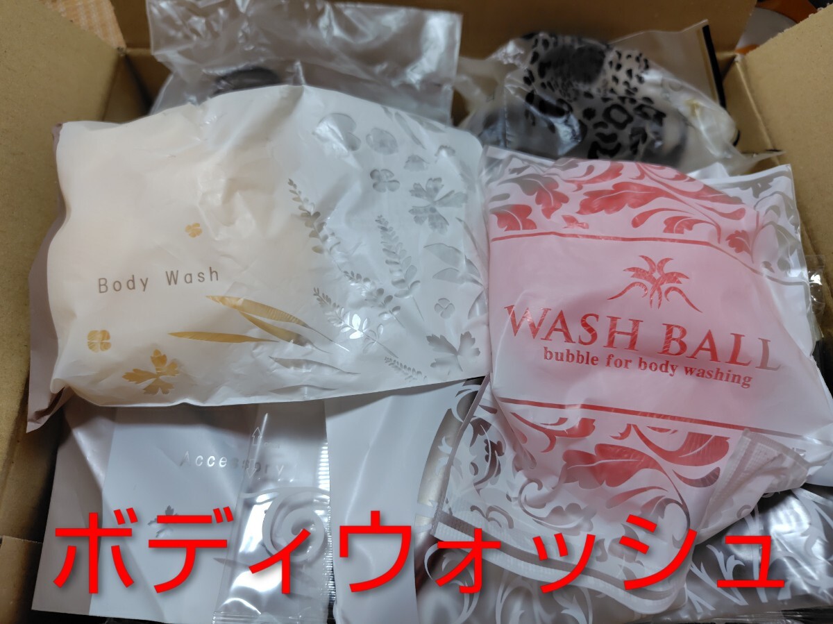 ボディウォッシュは写真では2個ですが、箱の隙間があれば何か他のボディタオルも入れたいと思います。