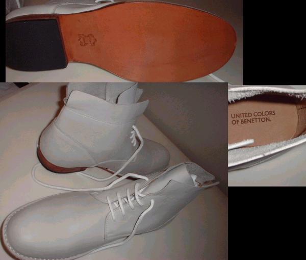 ■新品 25.5 26ベネトン 本皮革レザーシューズブーツ イタリア製革底S白