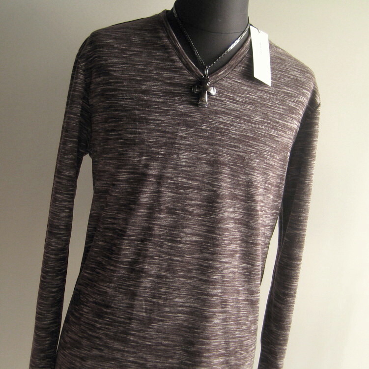 新品 L ハイストリート メランジボーダー長袖Vネックカットソー ブラウン サンプル 563