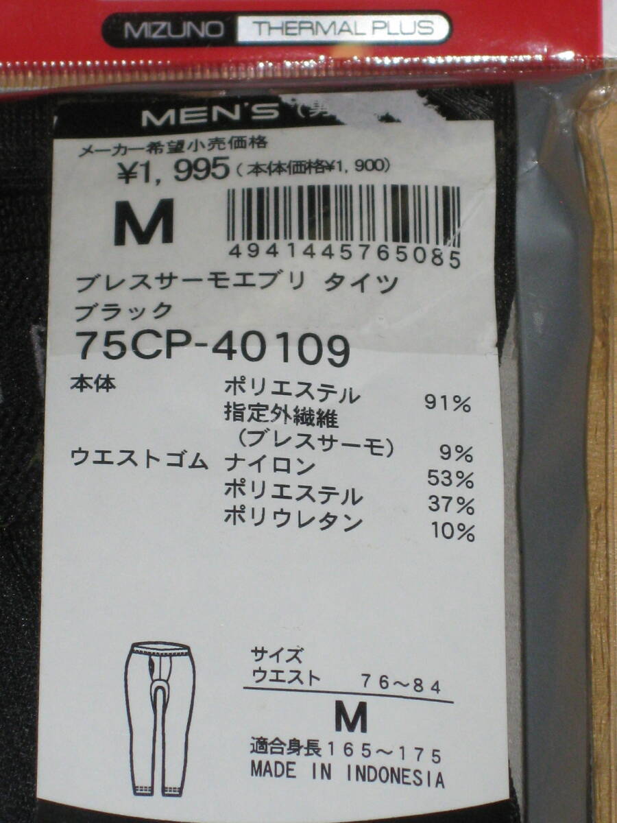 2枚セット ミズノ ブレスサーモエブリ タイツ 男性用 Mサイズ ブラック 75CP-40109 吸湿発熱 送¥370~ ズボン下 ステテコ
