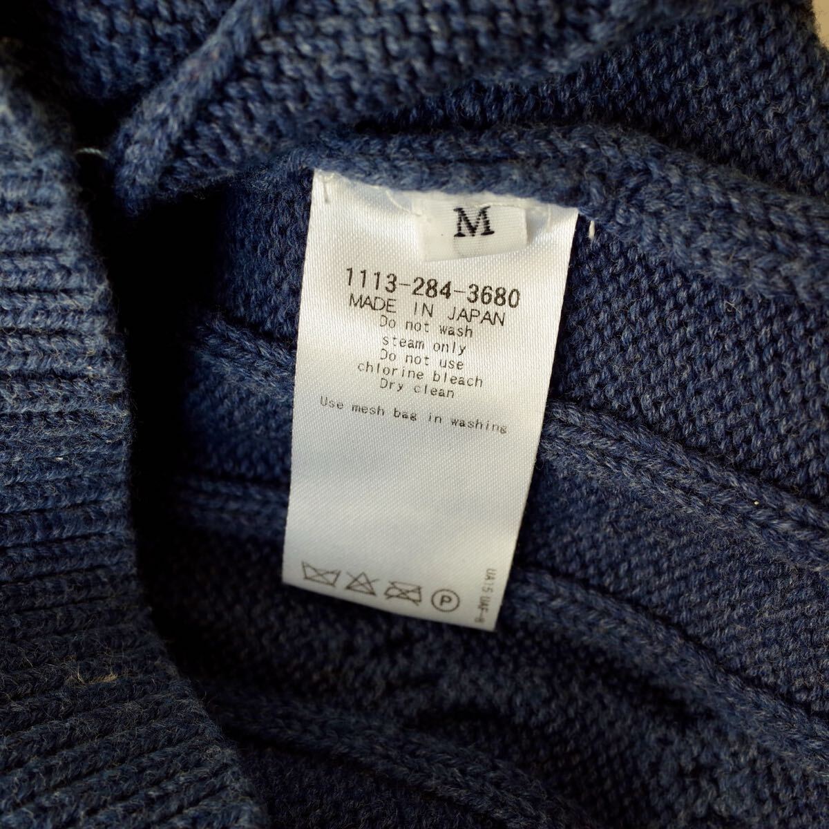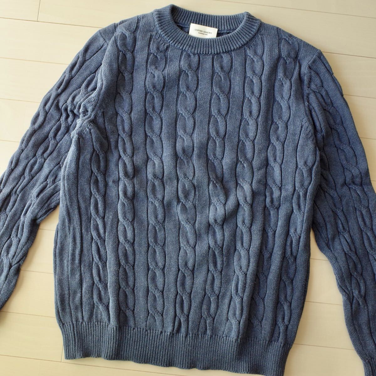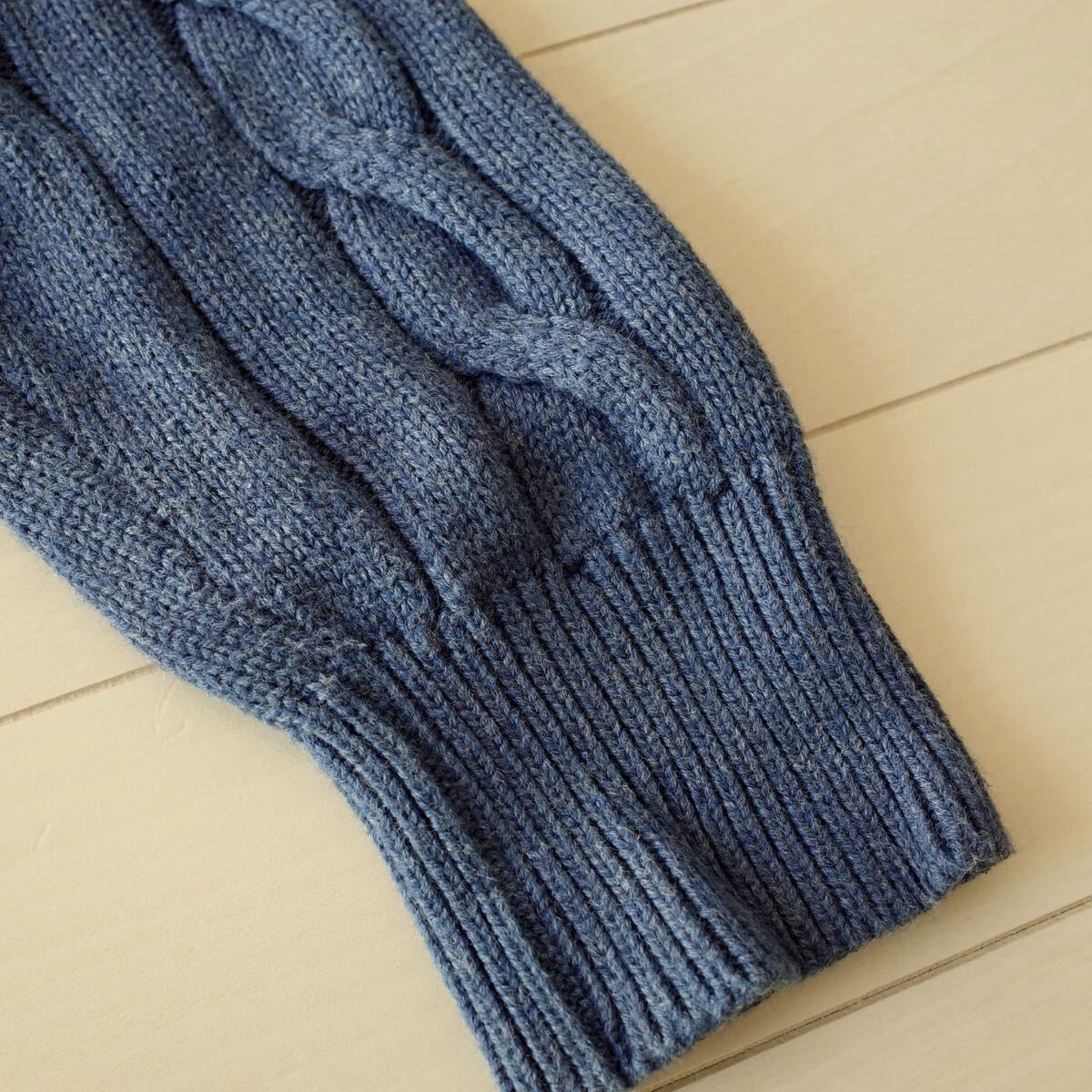 コットン素材のケーブルニットで、色はインディゴブルーです。