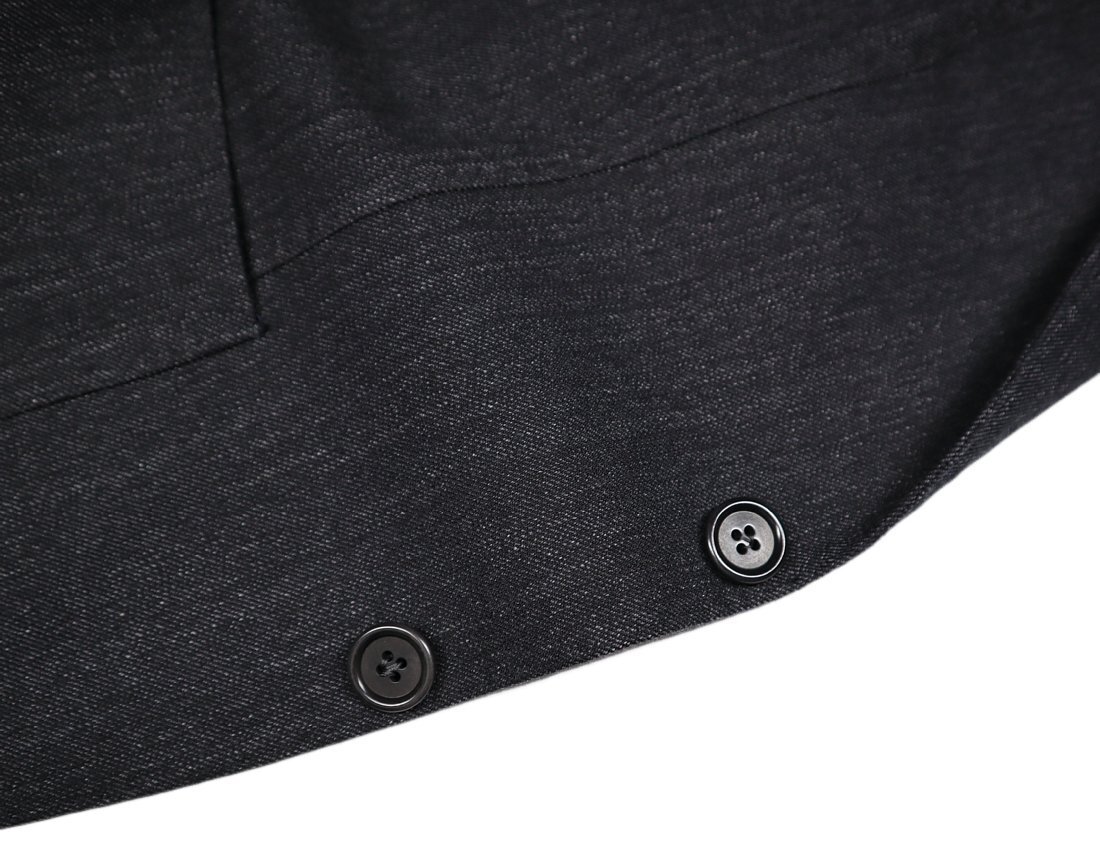 上質なデニムストレッチ生地を使用した、インディゴブラック色。かるく上品にウォッシュがかかり、実際はダークグレー色になっています。濃すぎず薄すぎずの色合いが絶妙です。