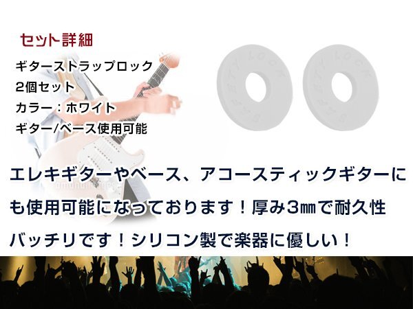 落下防止/ライブ用ギターストラップロック エレキギター アコギ ベース シリコンゴム製 ホワイト 白 2個セット エンドピン ストラップピン