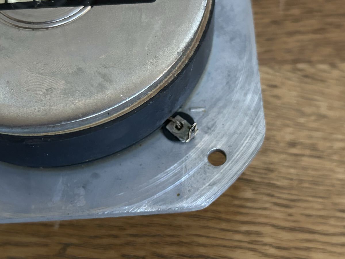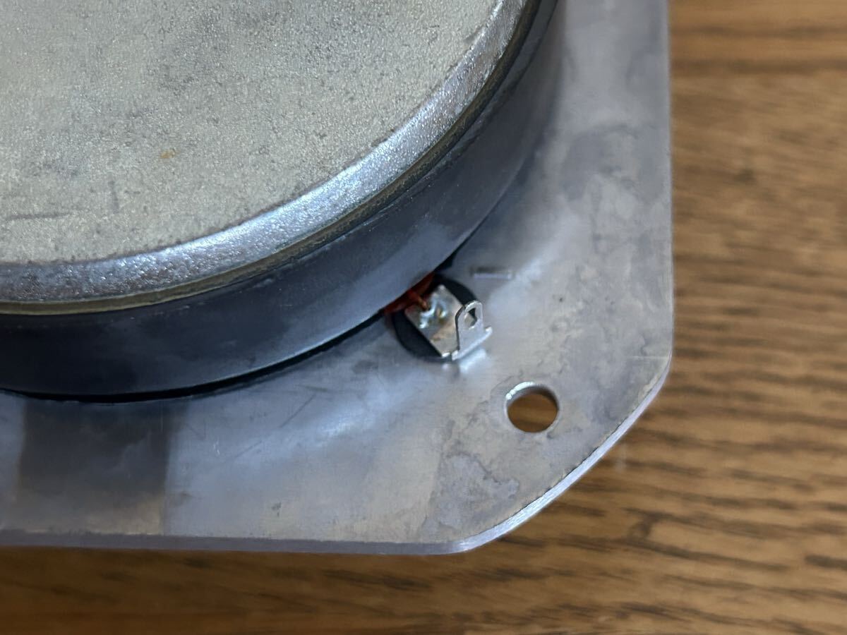 自作スピーカーに使用していましたが、片チャンネルが断線したため、ヤフオクで買った中古ユニットと交換しました。今回の出品はその2個セットです。2個の製造年月日が違うためか、右と左で裏のラベルデザインが異なります(写真7.8)、それ以外は同じです。また元箱は1個しかありません。そのためもう1個はほぼ同じサイズのダンボール箱に入れ郵送します。また木ネジと取説も1つしか付属しません。ガスケットは2つ付属します。