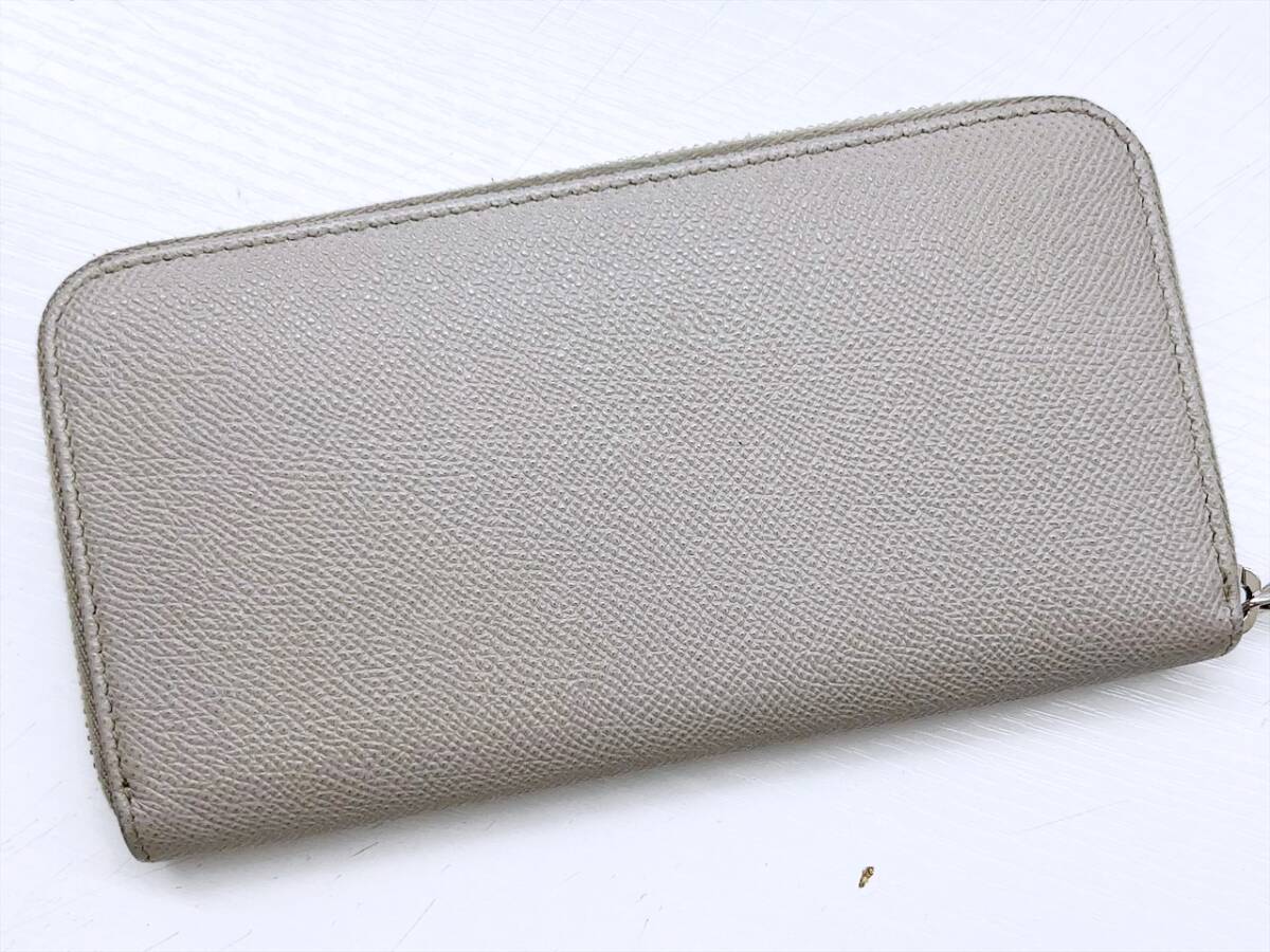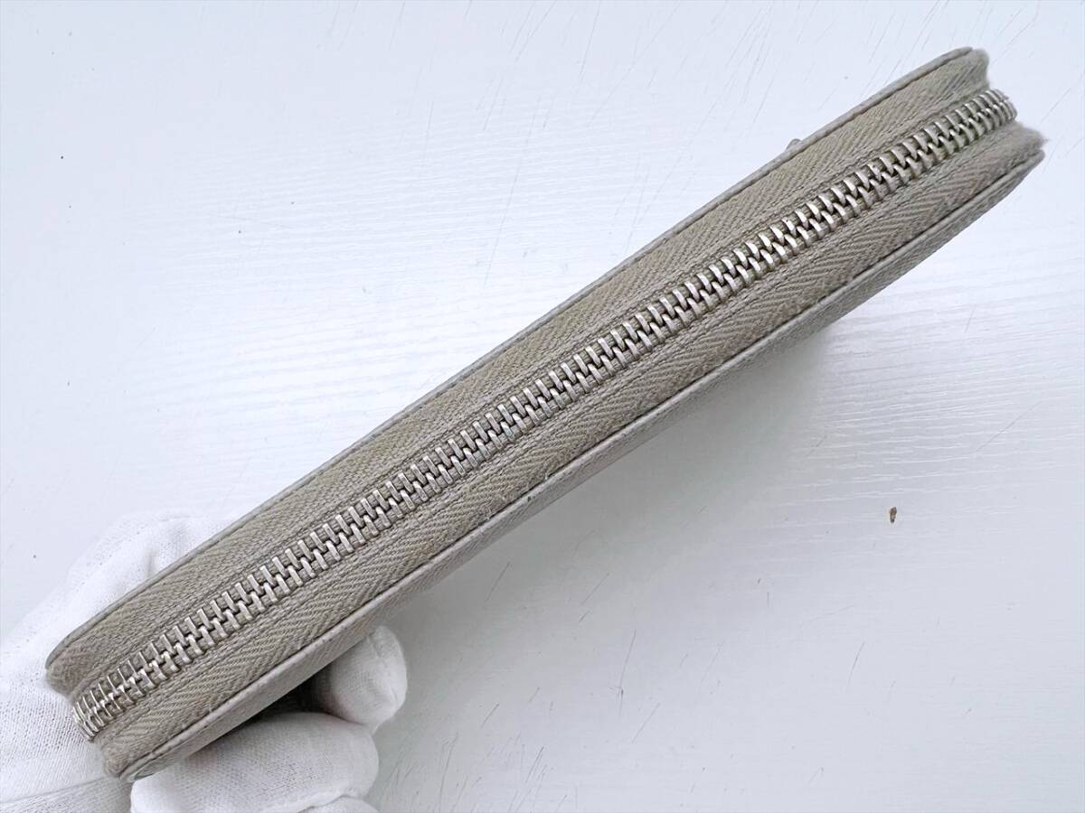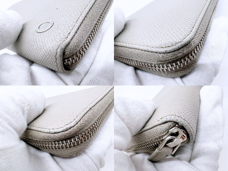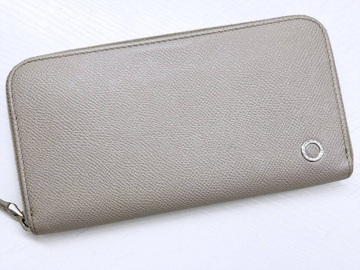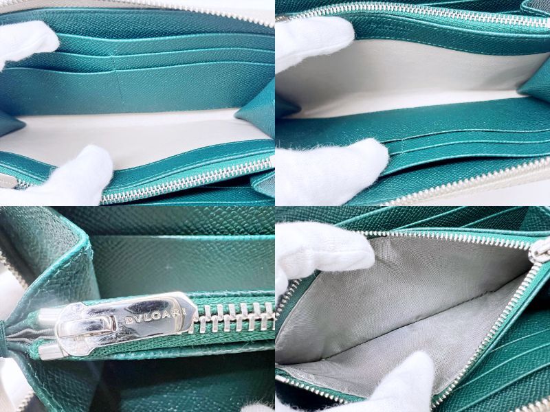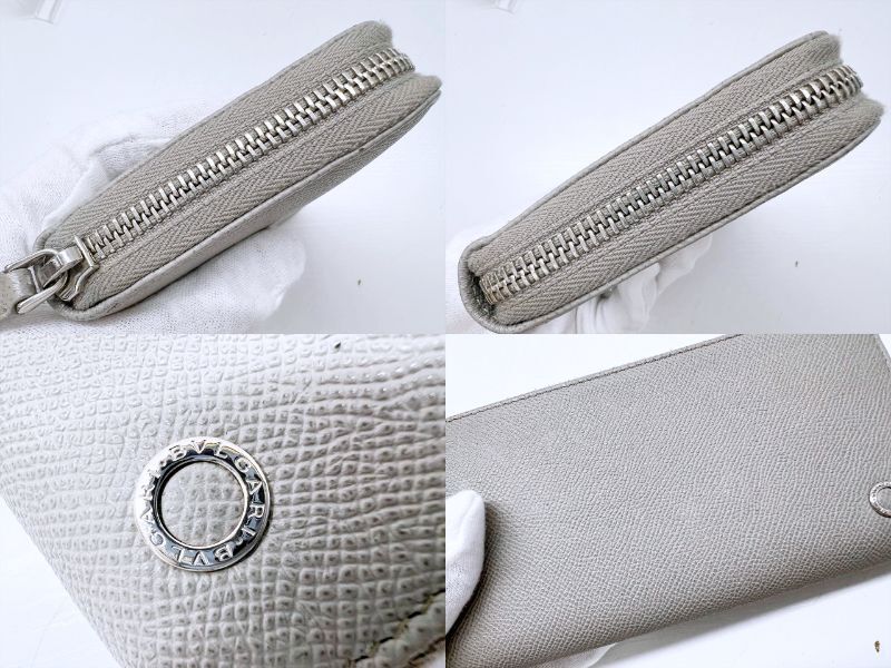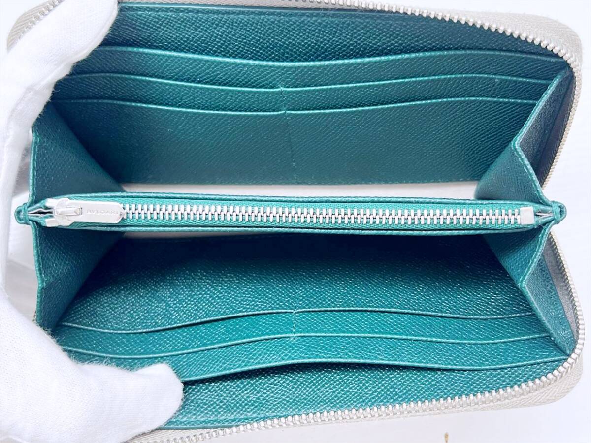 良好品 BVLGARI ブルガリ マン グレインレザー ラウンド 長財布 グレー シルバー グリーン