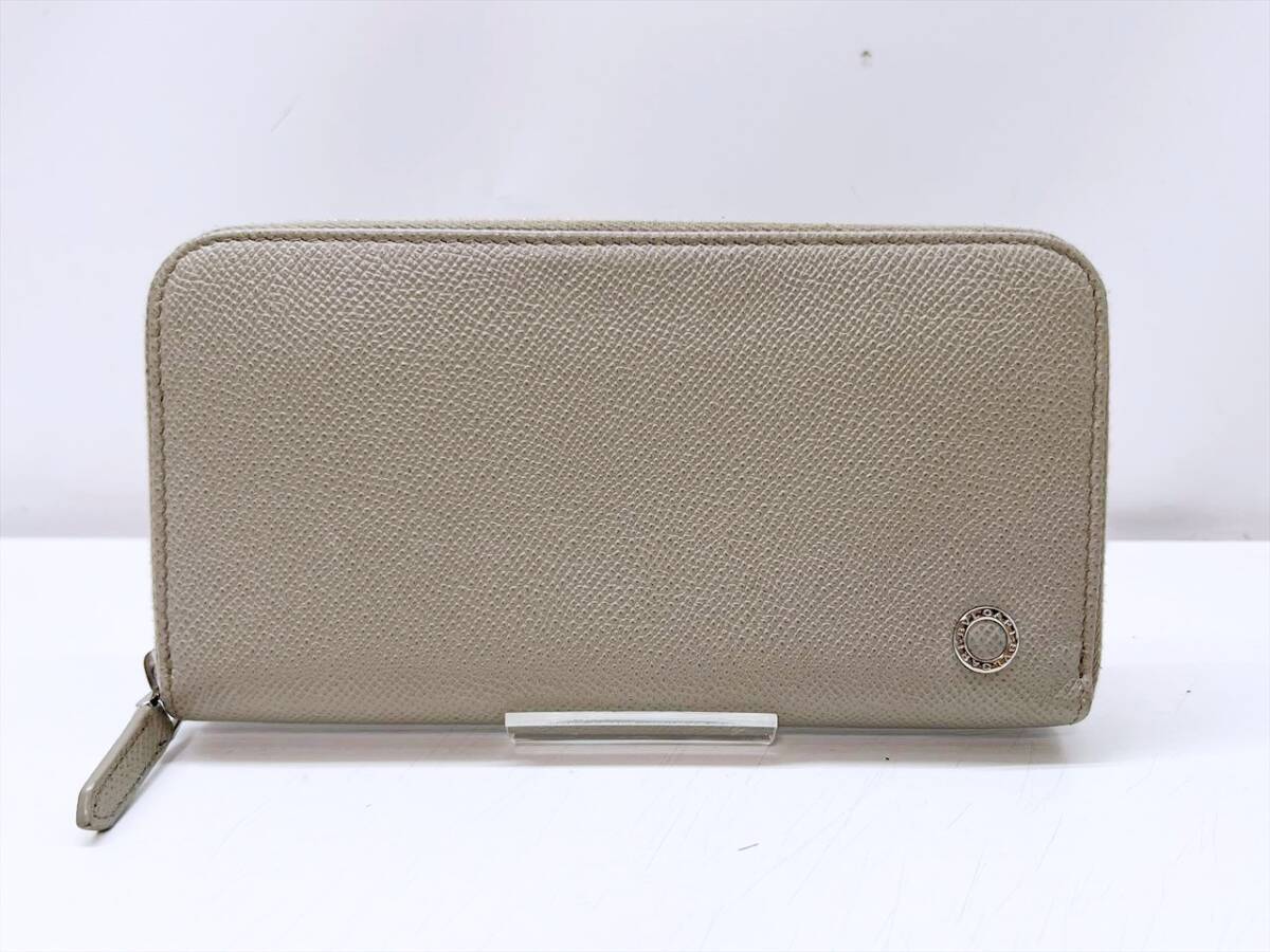 良好品 BVLGARI ブルガリ マン グレインレザー ラウンド 長財布 グレー シルバー グリーン