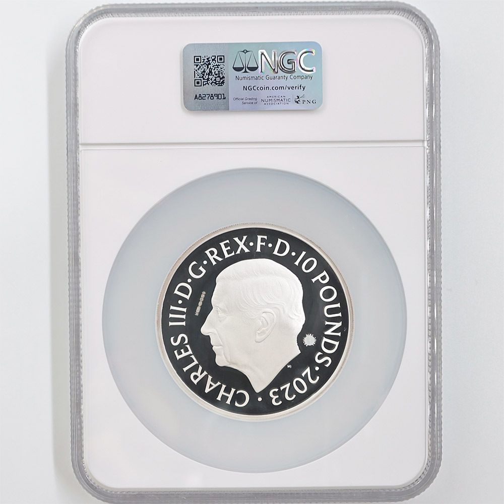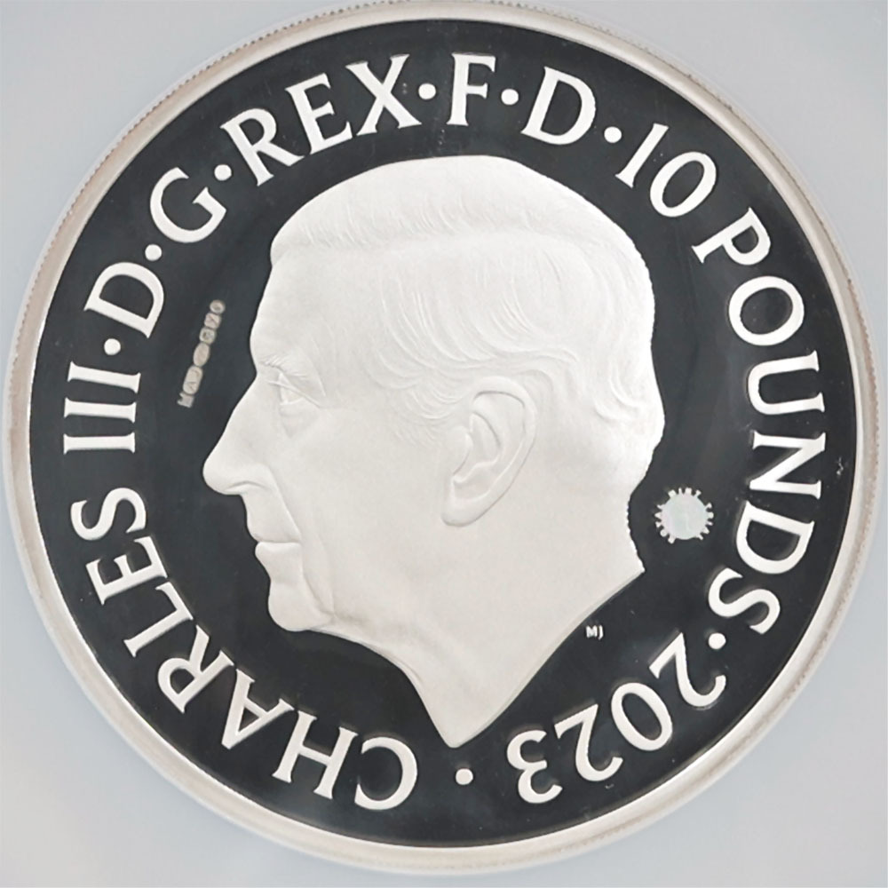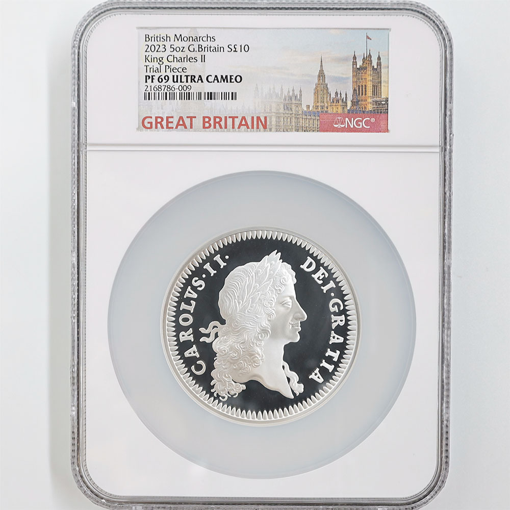 試鋳貨 2023 英国 君主 シリーズ チャールズ2世 10ポンド 銀貨 5オンス プルーフ NGC PF 69 UC 最高鑑定 完全未使用品 元箱付