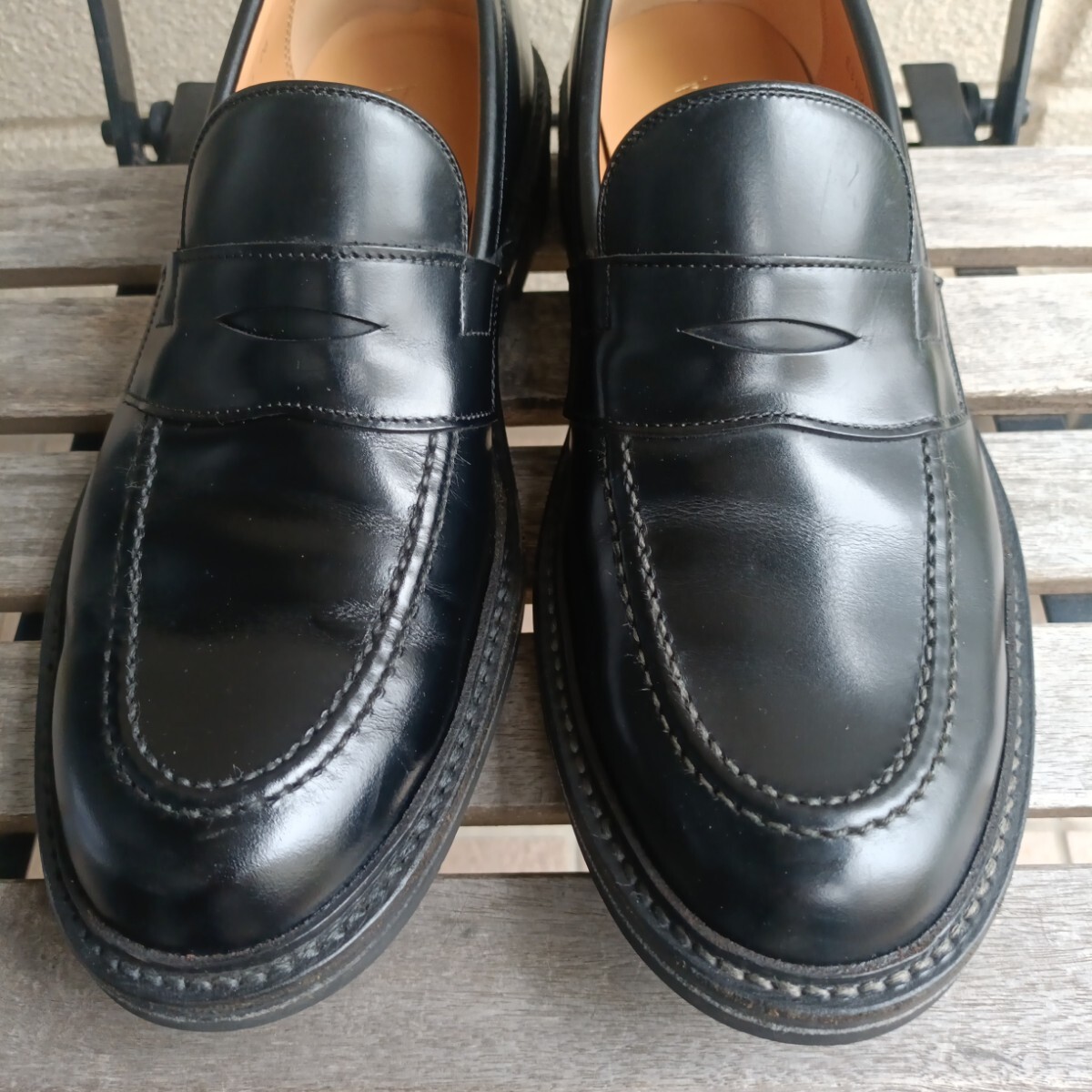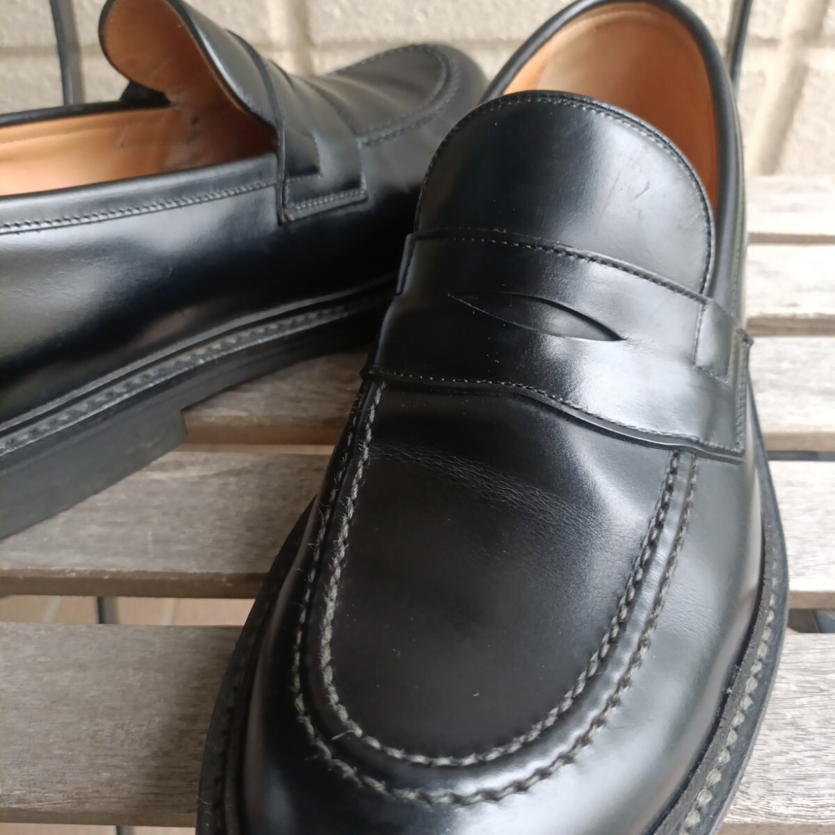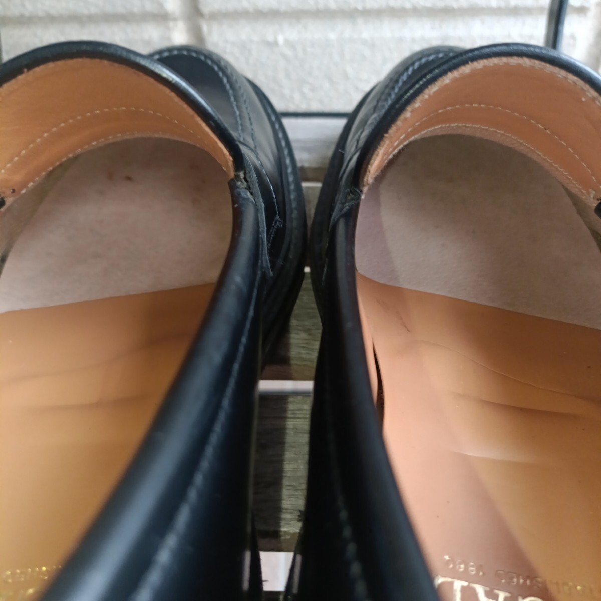 Uチップのコインローファー(ペニーローファー、ハーフサドル)で、ビジネスシーンからカジュアルシーンまで幅広く使えるデザインです。クッション性の高いラバースポンジソールと、軽量で履き心地の良さが特徴。歩行時の衝撃を吸収して疲れにくい構造になっています。