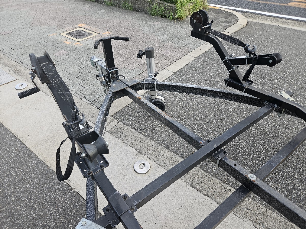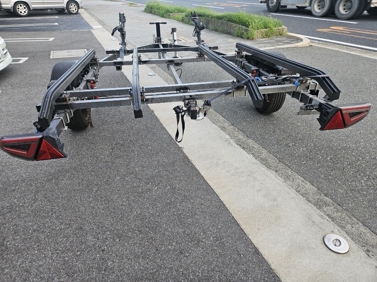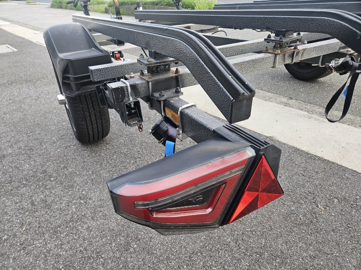 中古車 灯火問題なし 各部錆びあり フェンダー色褪せ 慣性ブレーキつき 社外ホイール リアベルト付き リアジャッキ付き キャリーハンドル付き シーケンシャルテール