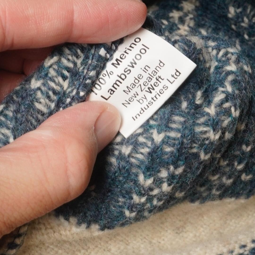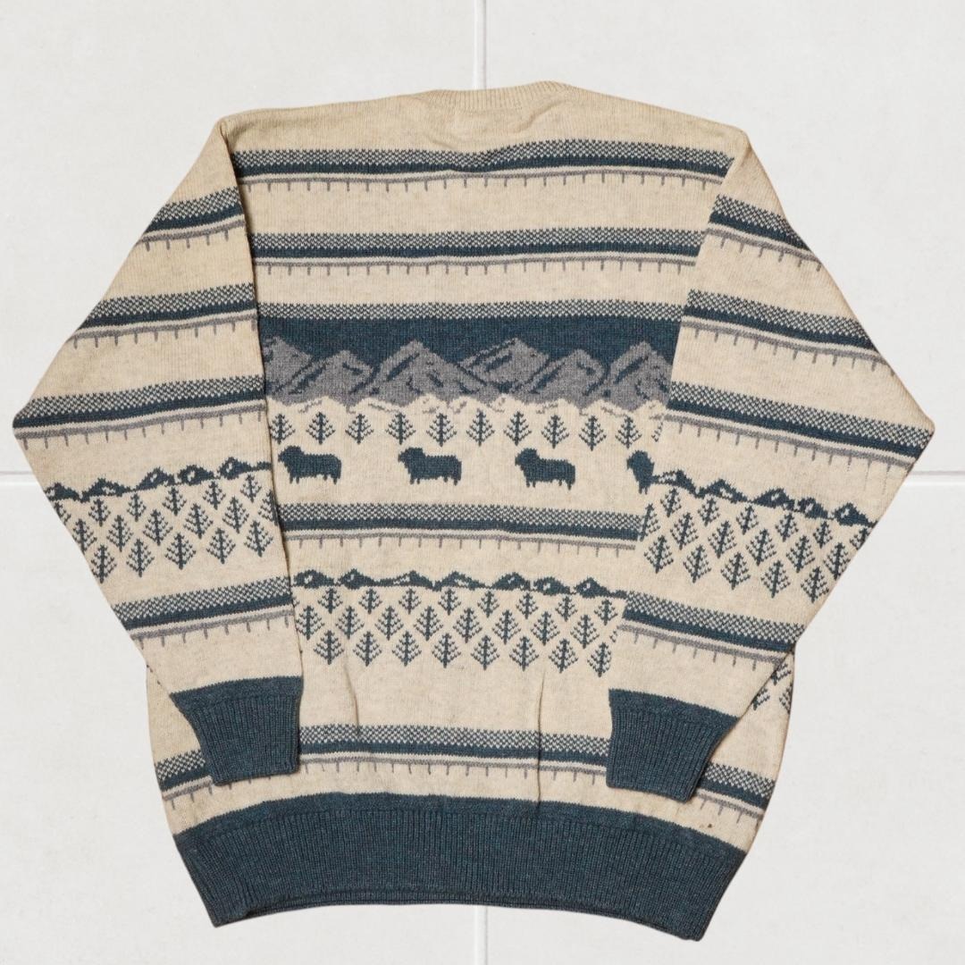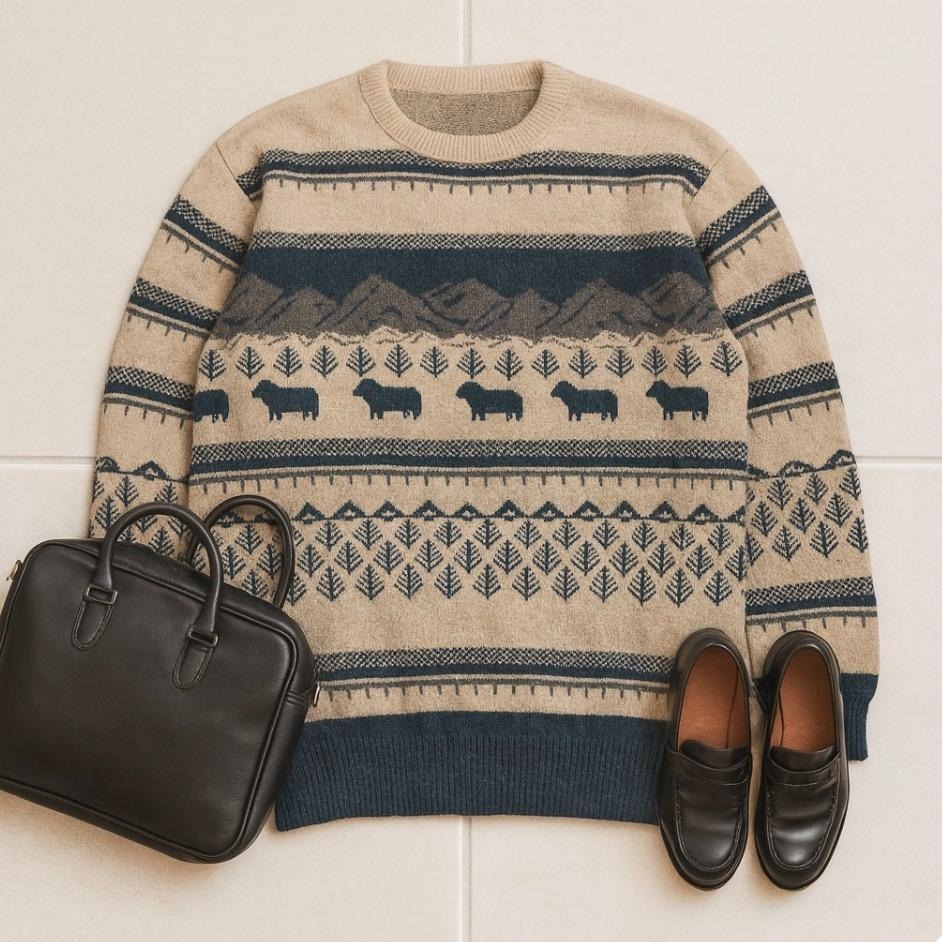 トナカイ柄や幾何学模様のフェアアイル風デザインが印象的で、冬のコーディネートに活躍します。