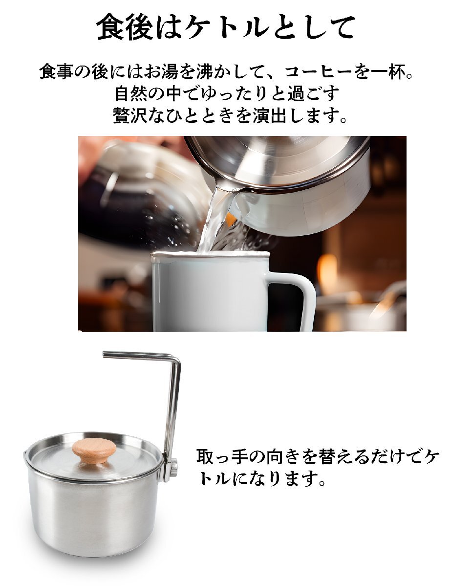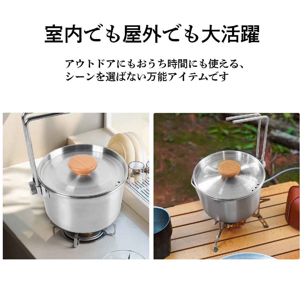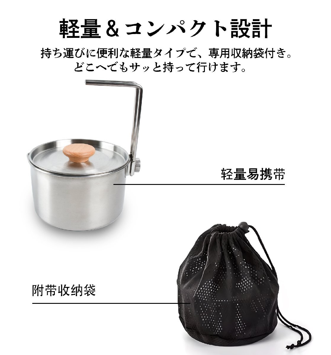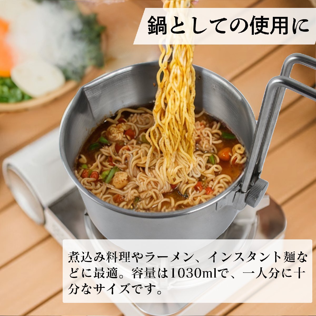 キャンピング鍋 2点セット ソロキャンプ用 クッカー 304ステンレス製 1030ml 軽量360g 天然木ハンドル フタ付き 直火対応