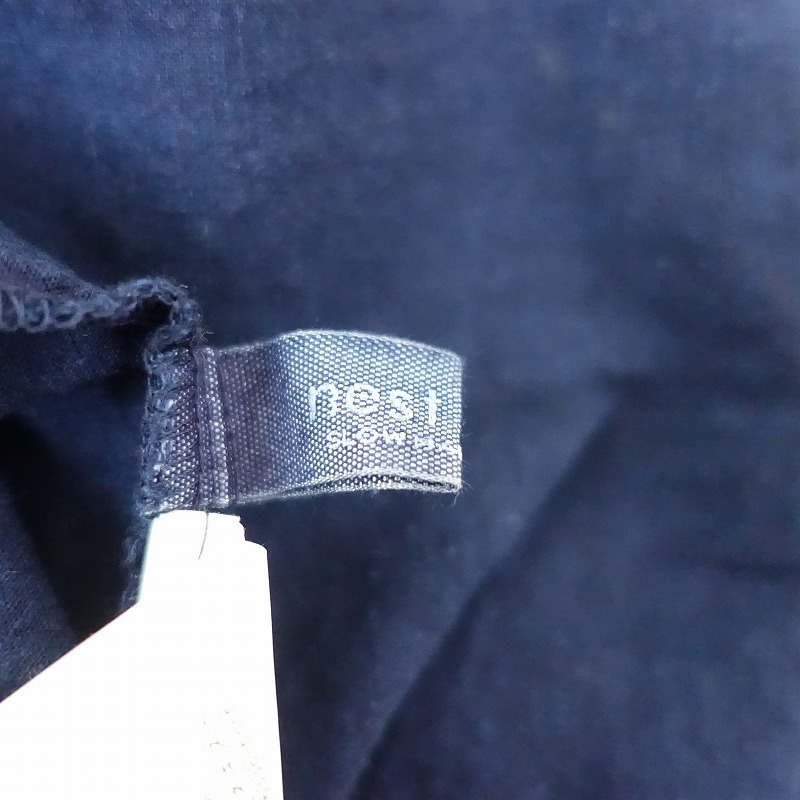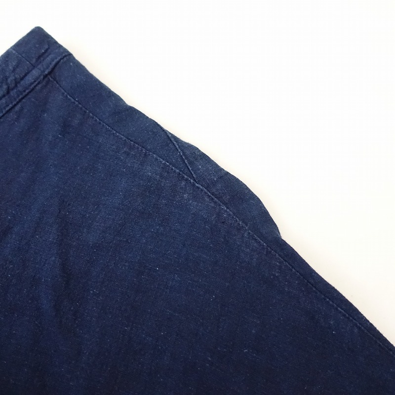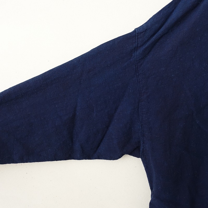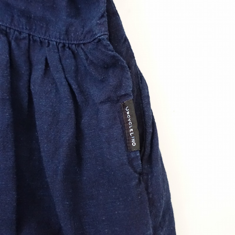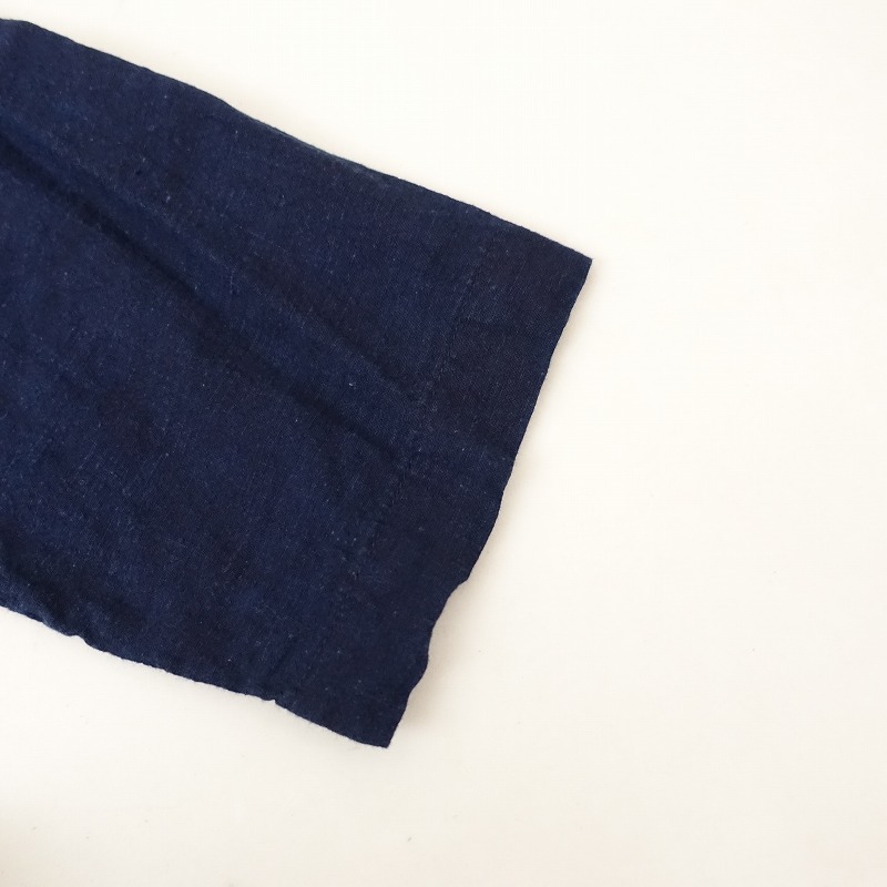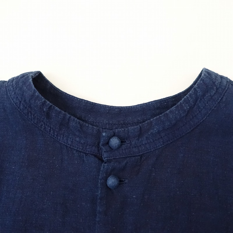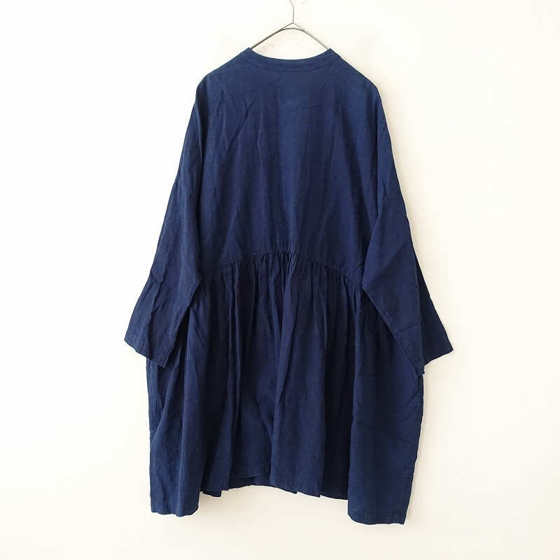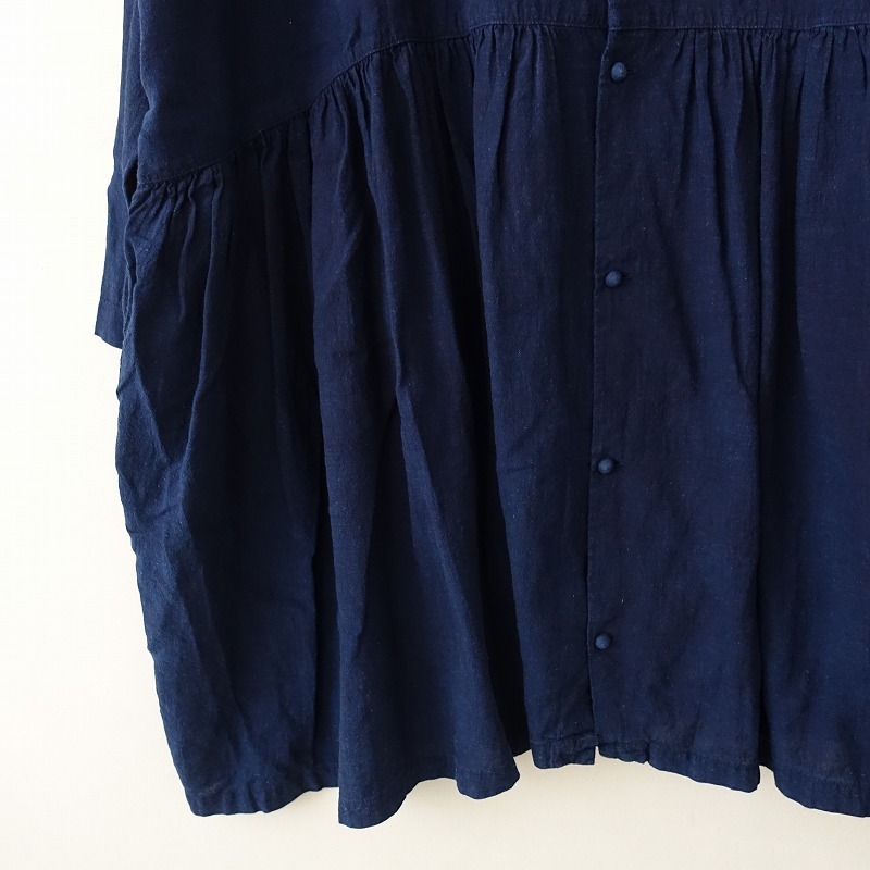 | 2023年コレクション nest Robe UpcycleLinoの近江晒インディゴ染めチュニックです。カラーはインディゴ染め(製品染め)が施されたネイビーで、小さなネップや織ムラのある麻×綿混紡の薄手素材です。ウエストギャザー切り替えが施されており、身幅広めのデザインです。フロントボタンで着脱でき、両サイドにシームポケットがございます。定価(メーカー希望小売価格)31,900円の商品です。 |
