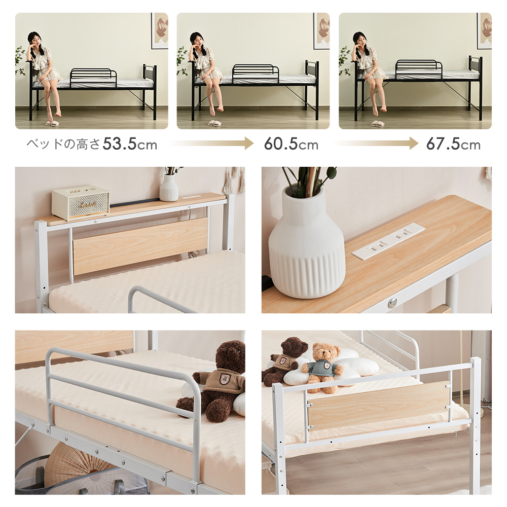 • 【ベッドの高さ調節可能】高さ調節可能から、ベッド下のスペースを有効活用し、お掃除も楽ちん、身長に適して、最も快適な高さに調節していただける。