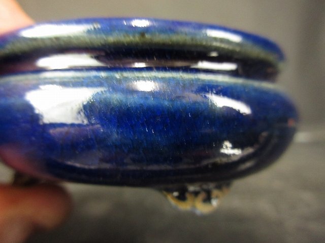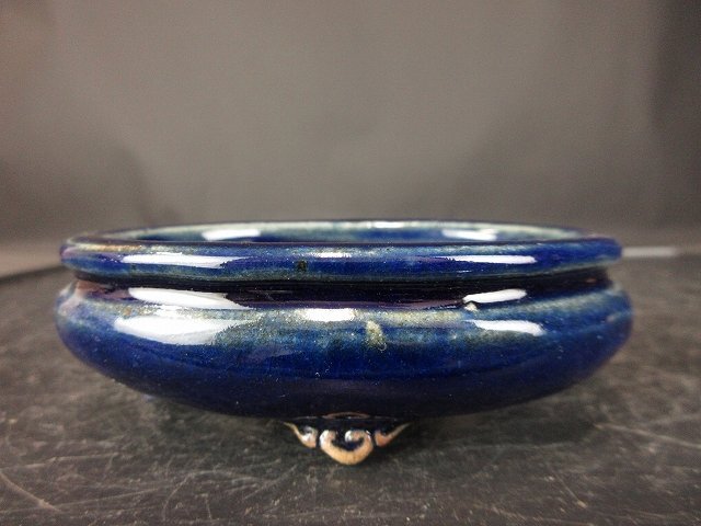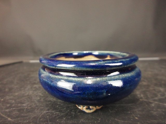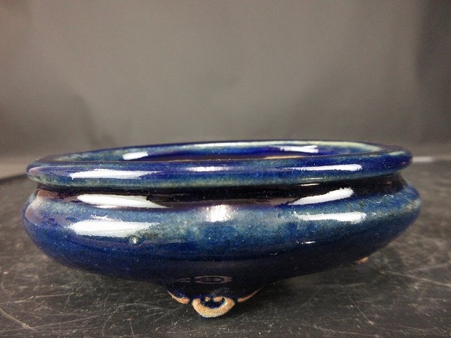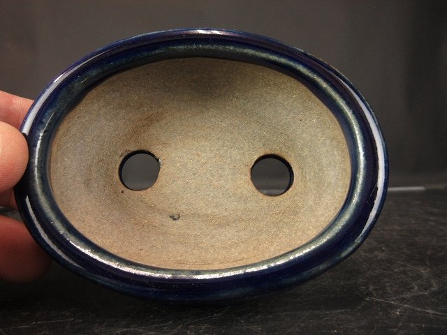 【盆栽 樂屋】◆谷嵐山 瑠璃釉袋式雲足楕円鉢 A94 (小品)(人気作家)(未使用品)(共布)◆10/11