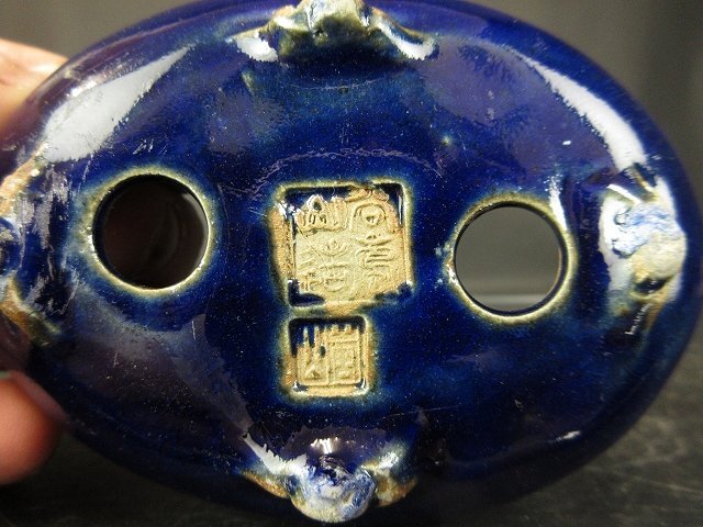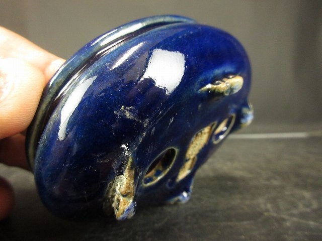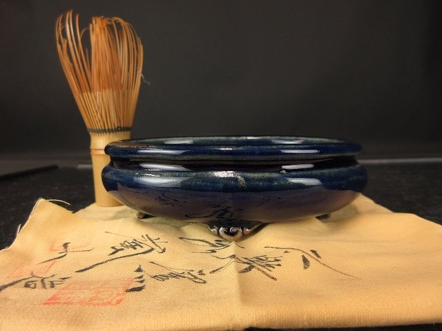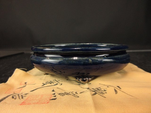 ご覧のような『谷嵐山 瑠璃釉袋式雲足楕円鉢 (小品)(人気作家)(未使用品)(共布)』でございます。鑑賞用・使い鉢としていかがでしょうか。