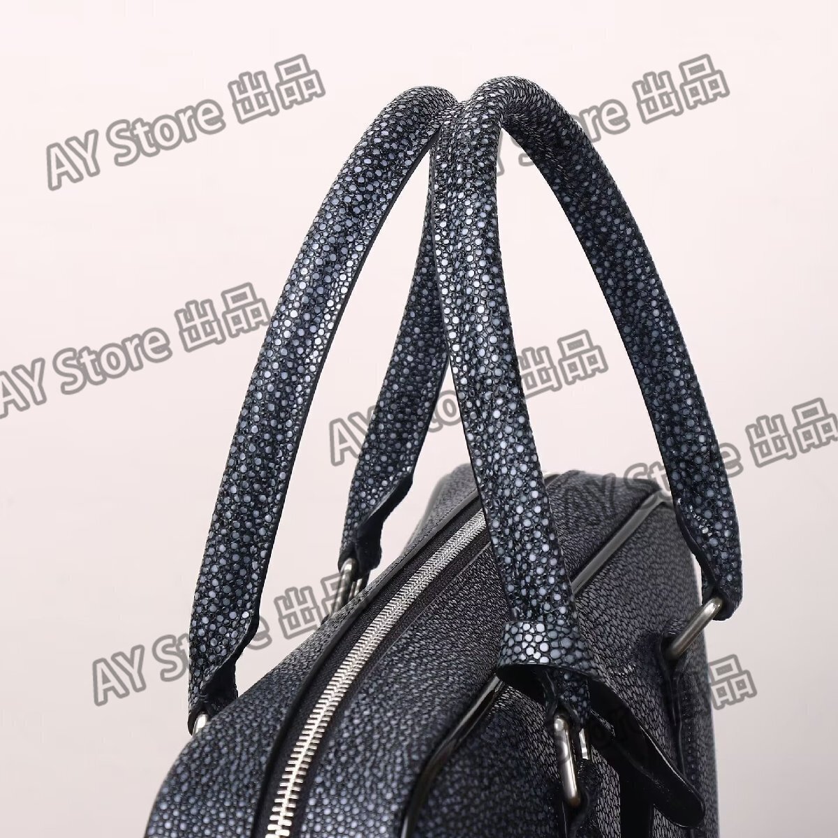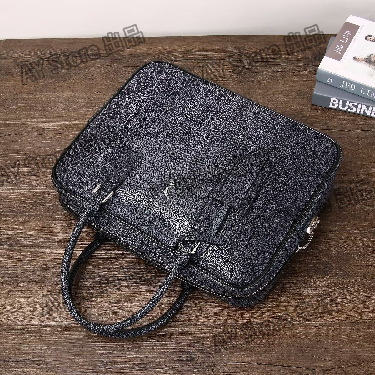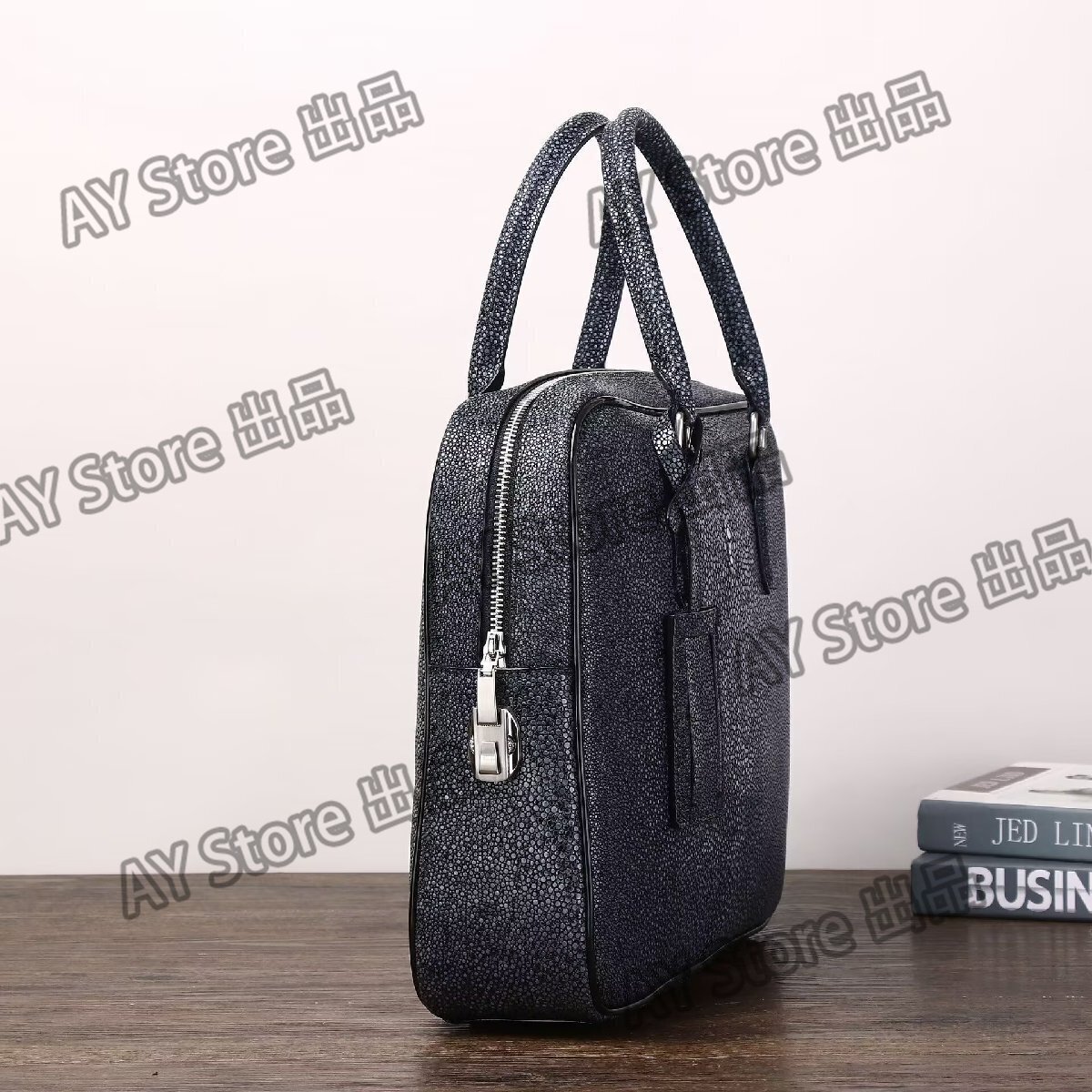 光沢感あり!エイ革 スティングレー ガルーシャ 大容量 ビジネスバッグ メンズ ショルダーバッグ 書類バッグ A4/PC対応 ブリーフケース