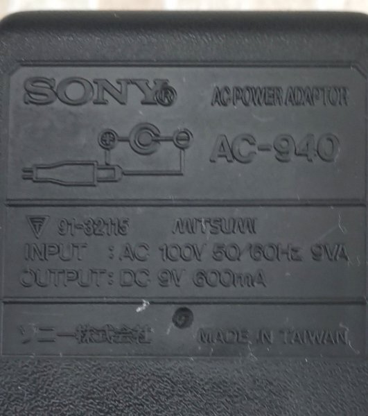 SONY ソニー ACアダプター AC-940 ディスクマン Discman 用 DC 9V 600mA センターマイナス 動作OK