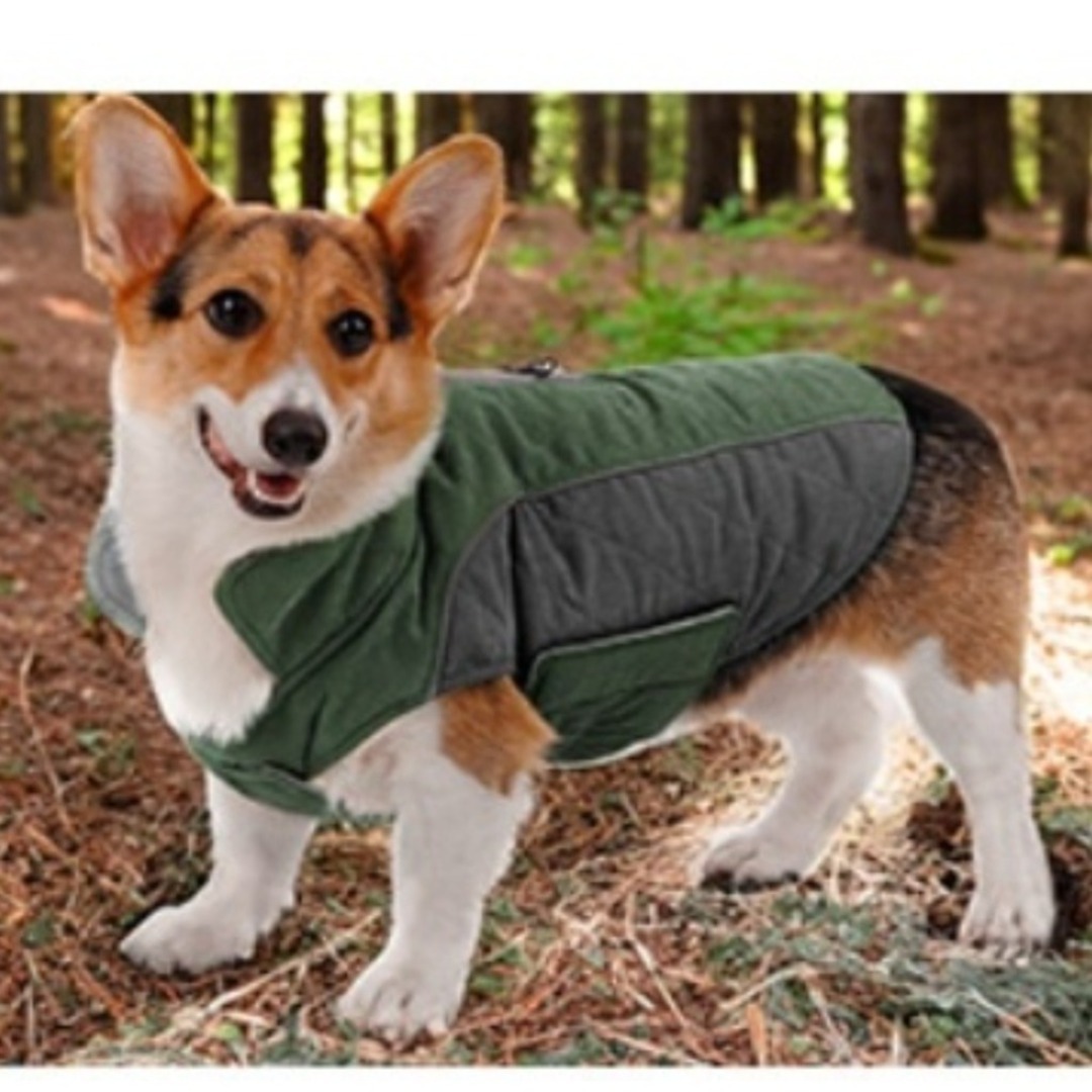 用途が広くスタイリッシュの三層犬服、片面は暖かく柔らかいスプライス生地で、もう片面は防水防風のポリエステル材料で、さまざまの天気によって着用の側面を選択します
