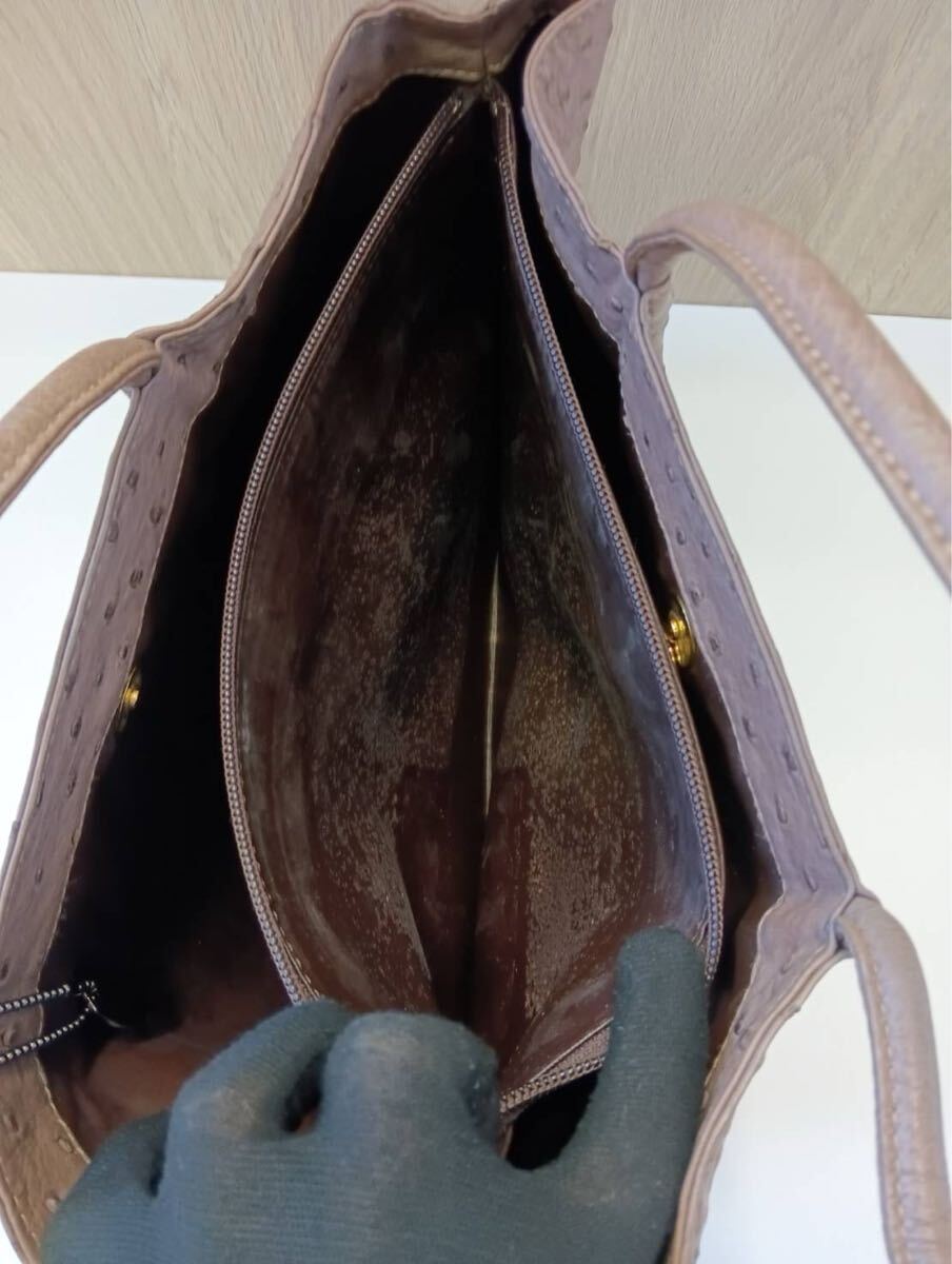 JRA認定 オーストリッチ トートバッグ ハンドバッグ 茶ブラウン 肩掛け 手提げ バッグかばん 現状品