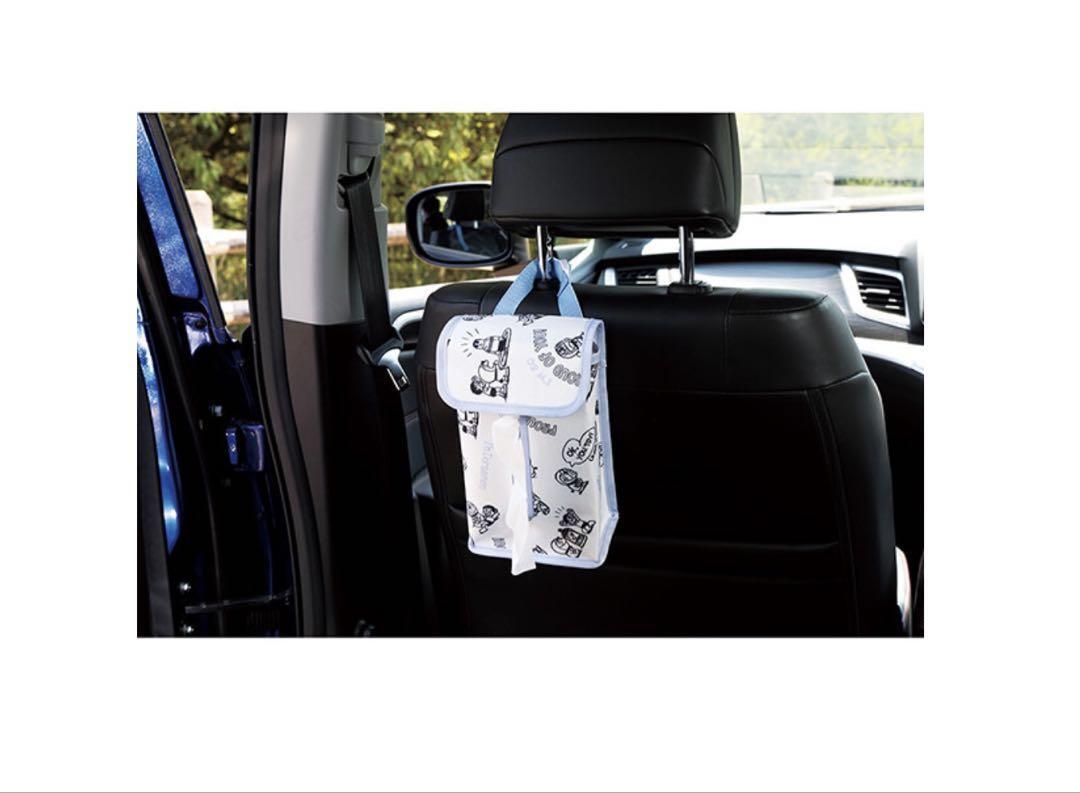箱入りティッシュを車内の様々な所に取り付けられるカバー。
