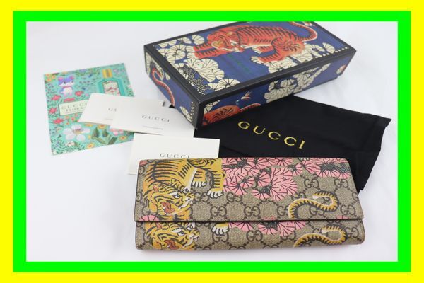 ★1円スタート 売り切り★美品★GUCCI/グッチ★GGブルームス★二つ折り 長財布★タイガー/虎×フラワー/花★札入 小銭入 カード入×20★A