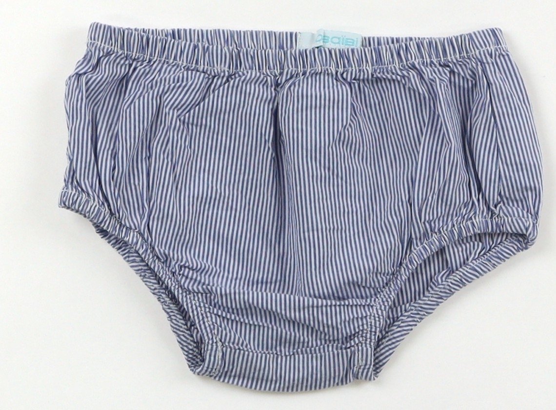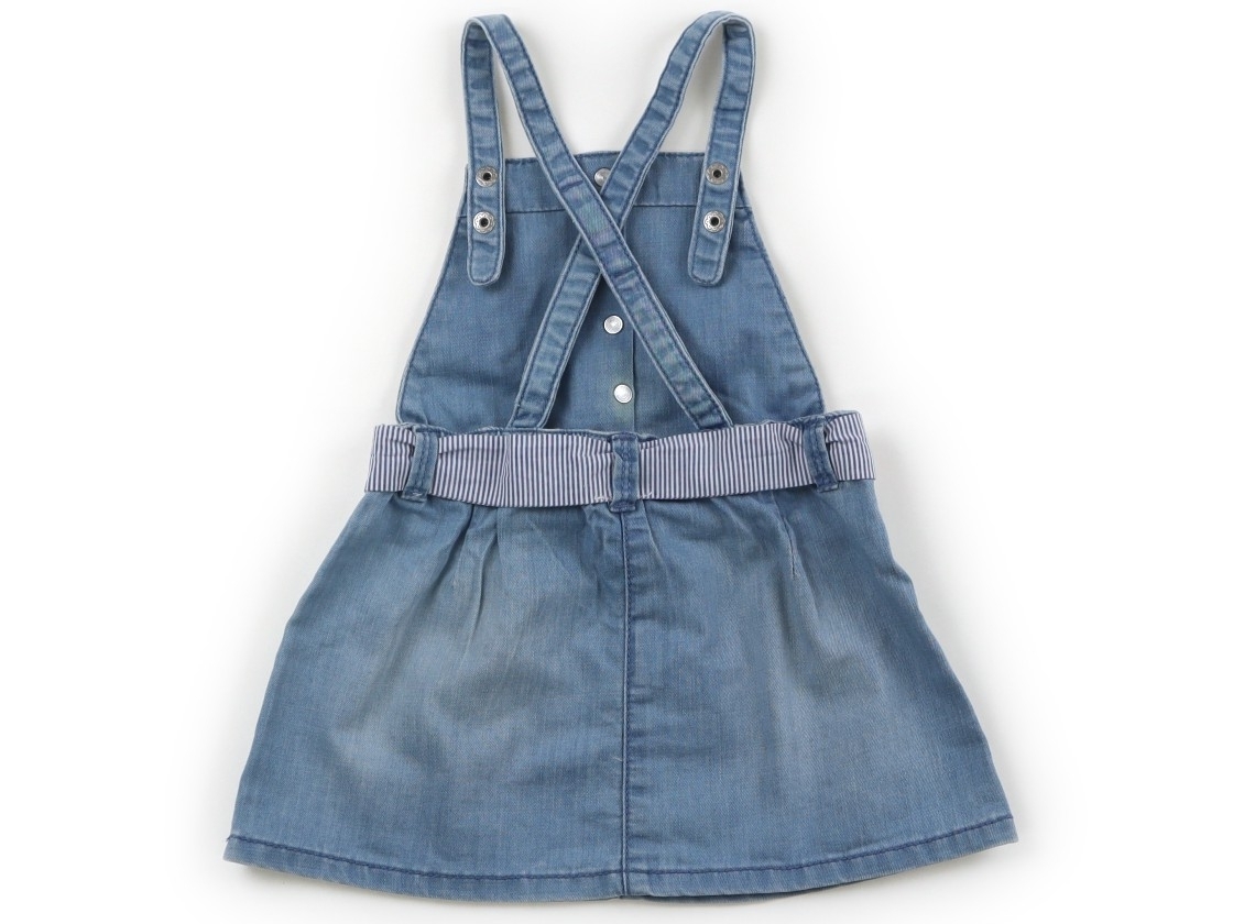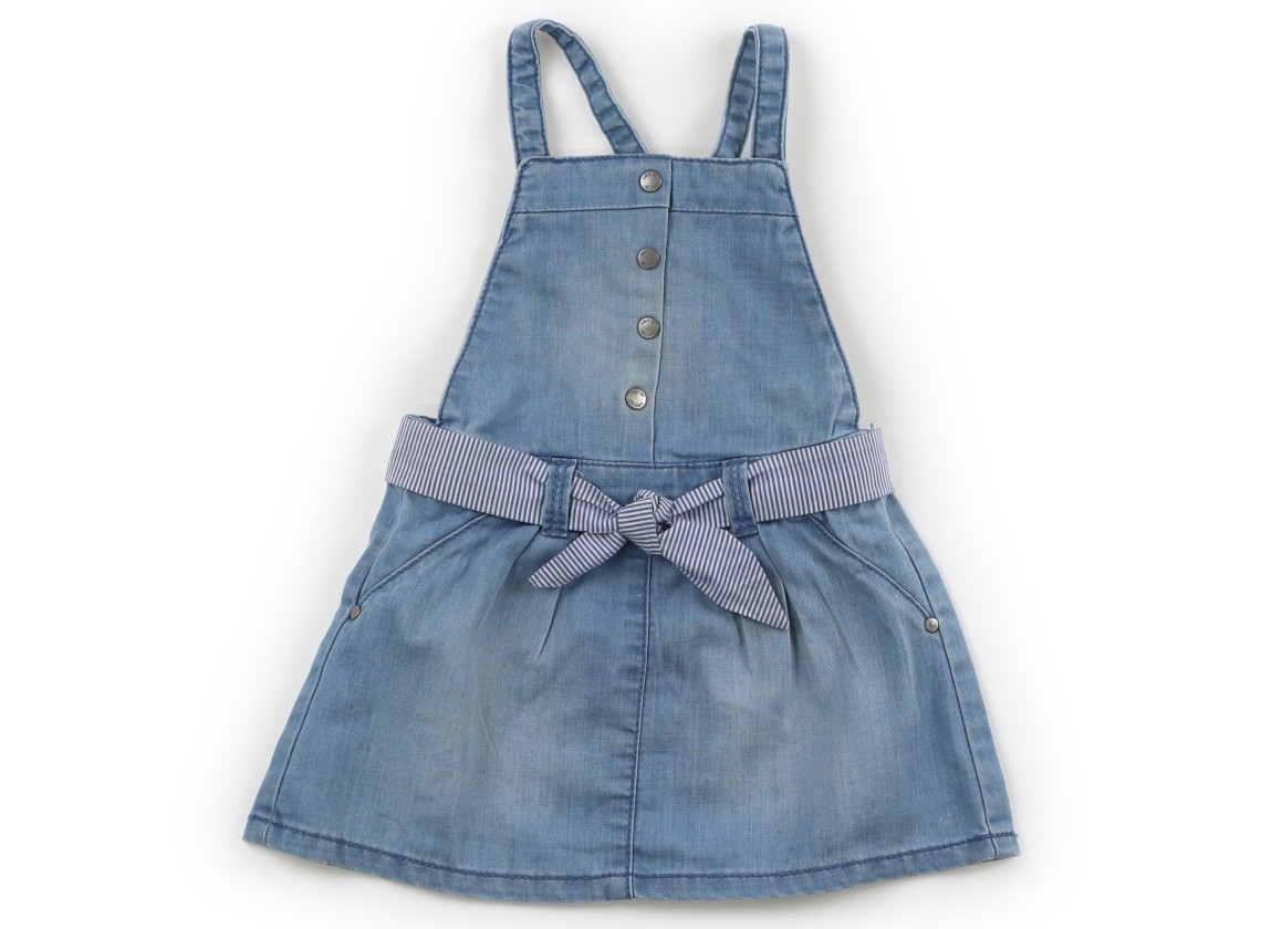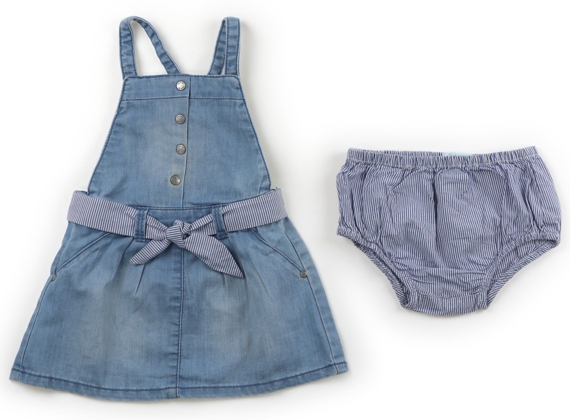 薄手のデニム地とシャツ地。ブルマ付き。実際のサイズ表記は74cm。リボンは取外し可能。全体的に使用感がありますが、特に目立つ汚れはなくまだお使い頂けそうです。