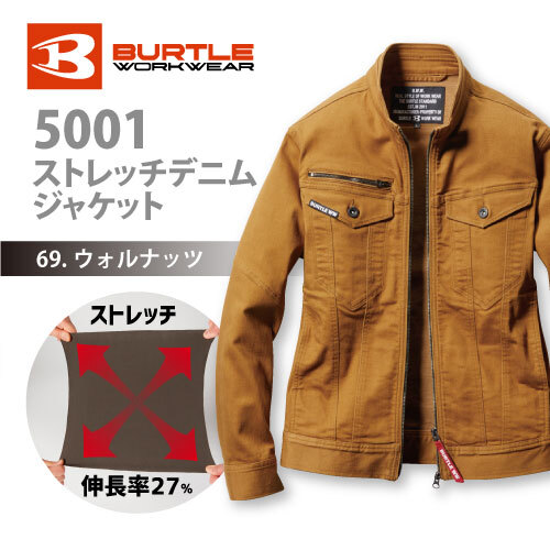 バートル 5001シリーズ 【5001】ストレッチデニムジャケット ■3Lサイズ■ ウォルナッツ色