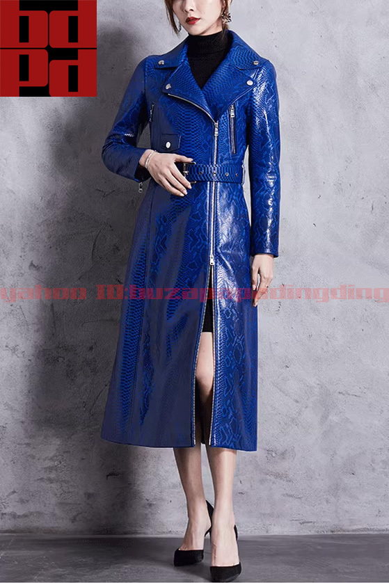 輸入ピザードプリント ラムレザー アシンメトリー ジップ トレンチコート レディース 秋冬 レザーコート おしゃれ かっこいい 個性的 Z19