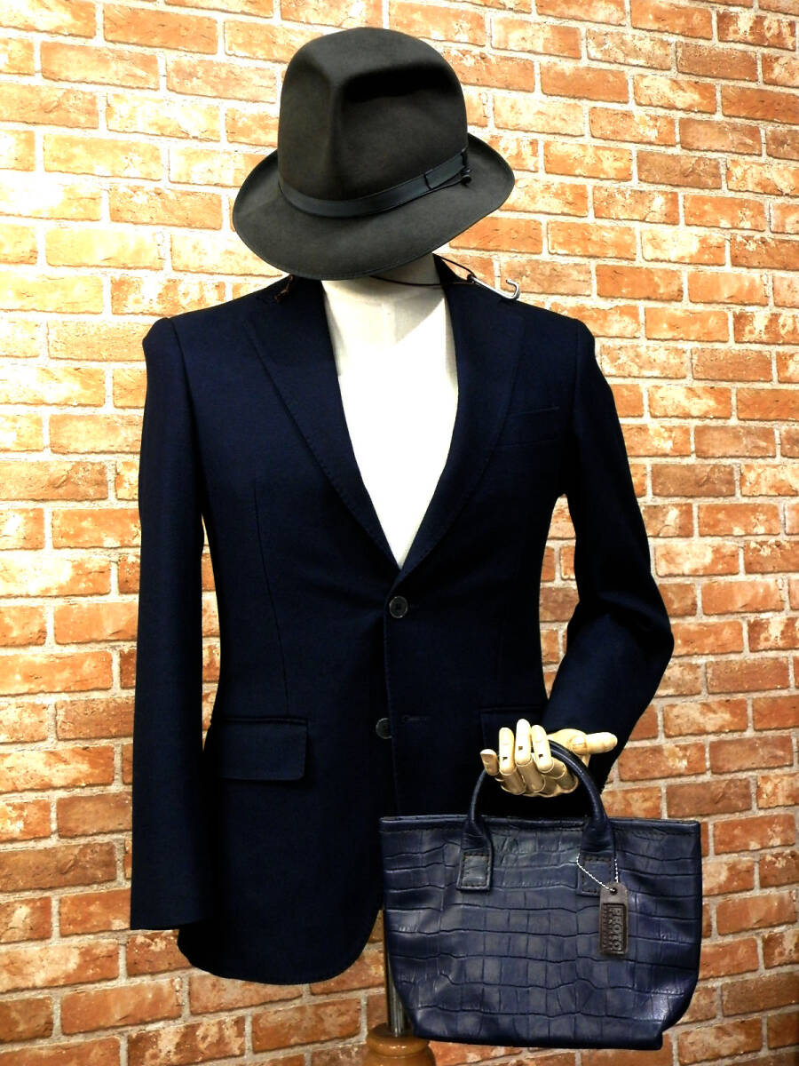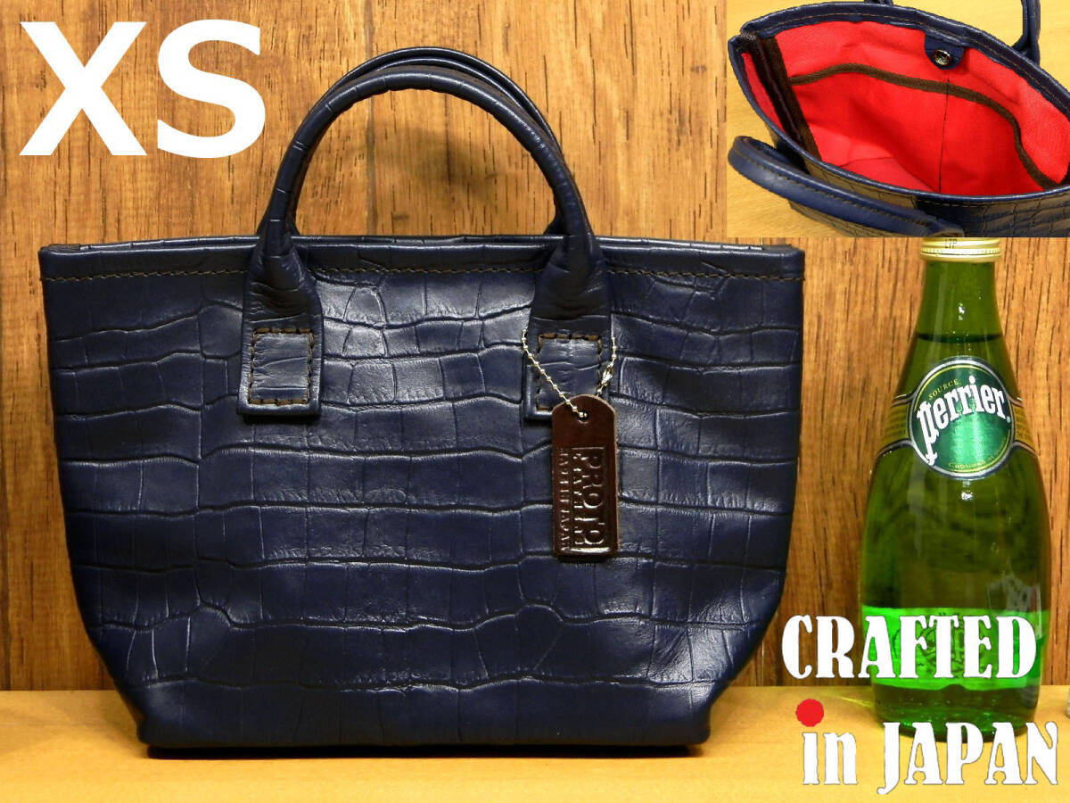 ☆XSサイズ☆オレンジ裏地×ダークネイビー クロコ柄レザーの小型ミニ トートバッグ!日本製 姫路レザー濃紺 本革 牛革 帆布ハンドメイド
