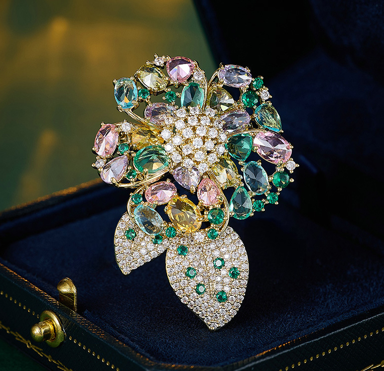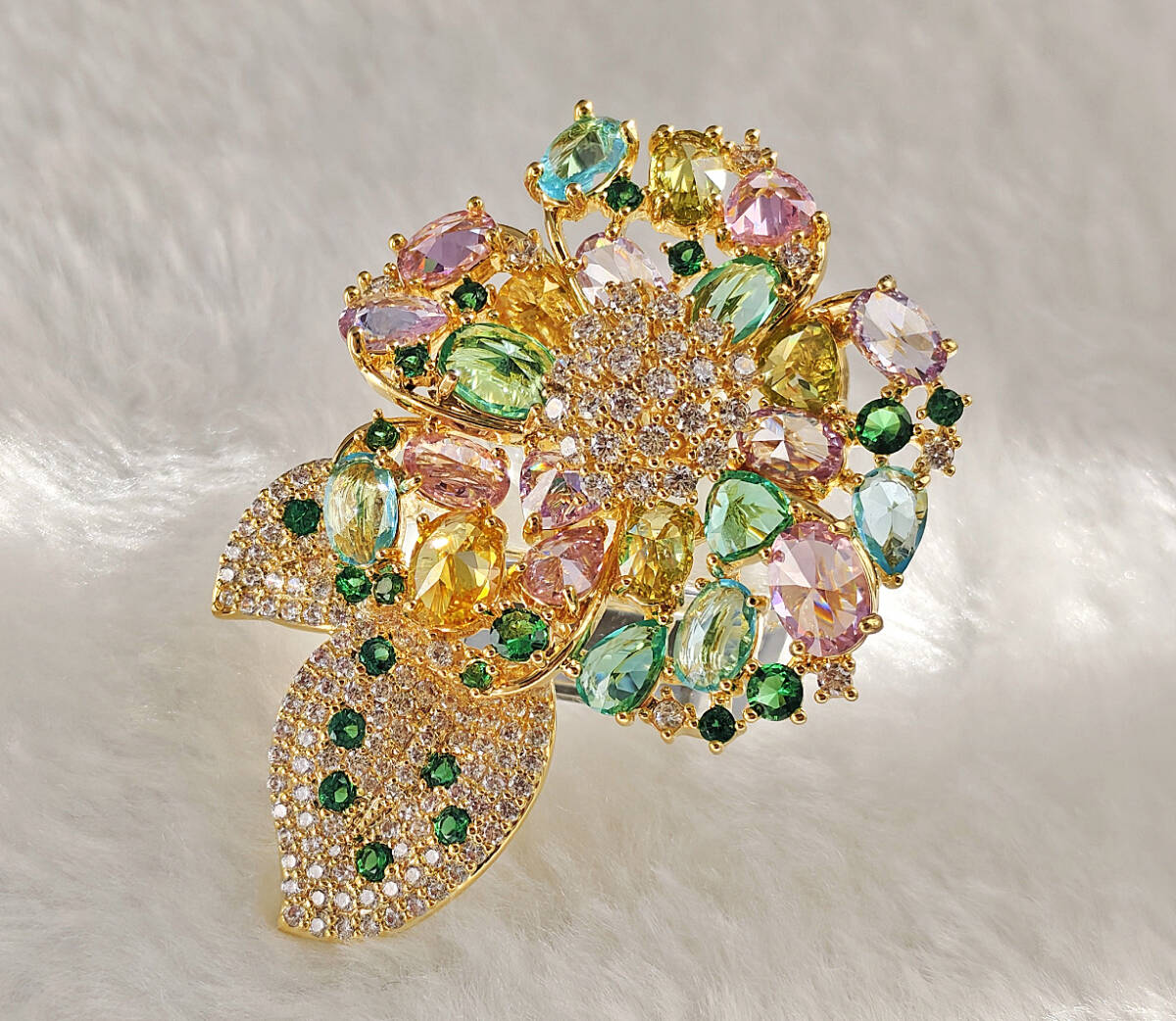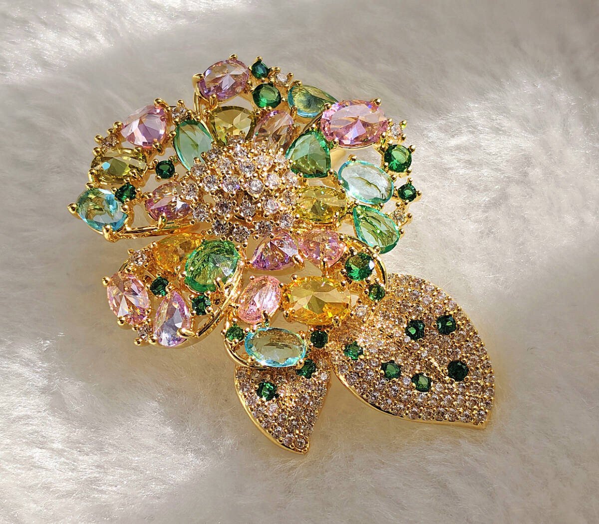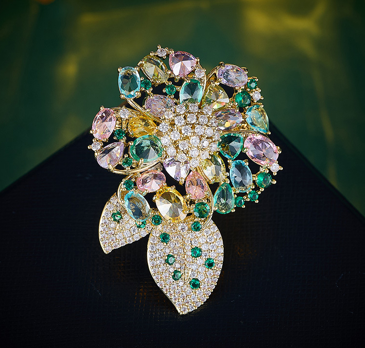 JS16-066◆Bigstone◆高級感【綺麗なフラワー】細工を極める*ファッション印象*豪華なブローチ