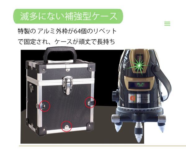 ・傾斜アラーム:本体傾斜角±3°でレーザー光点滅