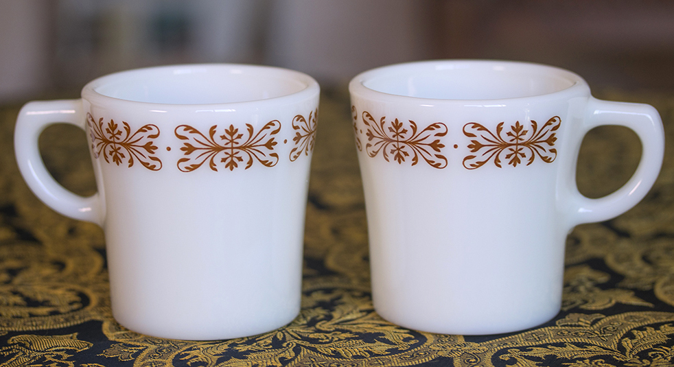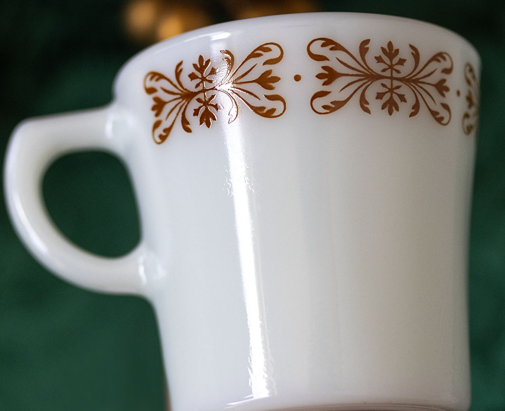 【商品の状態】 ★★★★★★ 製造年:1960年~1970年代 口径6.8cm 高さ7.8cm オールドパイレックスのカッパーフィルグリーの耐熱ミルクグラスマグ2個セットです。 2個ともヒビ、カケなく、ツヤがあり、使用感もなくミントコンディションです。内底に光をあててわかる程度の小さい水垢のようなあとが少しある以外は、リムのざらつきやプリントロスもなく当時の艶やかさでおすすめ品です。 2個とも底にはパイレックスの刻印があります。 60サイズでの発送となります。送料は料金表をご確認くださいませ。K833-2 |